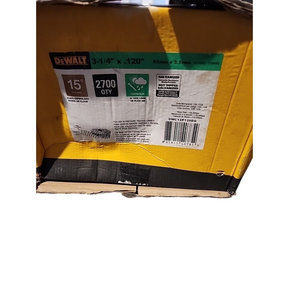 Build with confidence using these DEWALT 3-1/4 inch 15-degree coil framing nails. Engineered for exceptional holding power and durability, these galvanized nails are designed to withstand the elements, making them perfect for outdoor projects. Their precise sizing ensures a snug fit and reliable performance in your framing nailer, delivering a clean and professional finish for any construction task. Whether you're framing a new deck, building a fence, or tackling a home renovation, these nails provide the strength and reliability you need to get the job done right. Ideal for framing new homes, outdoor structures, or any DIY project requiring robust fastening.