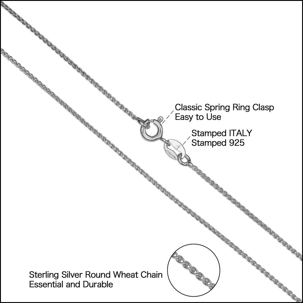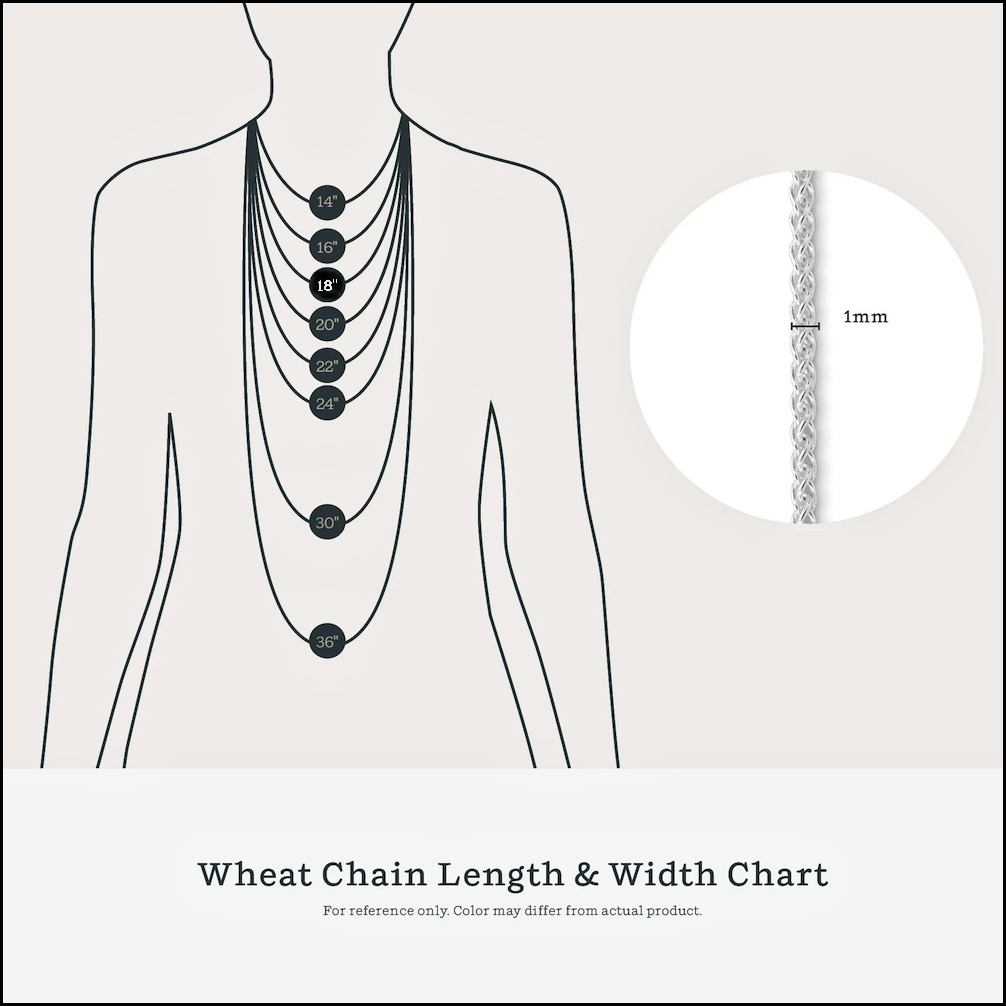 Material: This wheat chain is crafted in Italy with fine 925 sterling silver and features a high-polished finish, offering an elegant shine. The chain is stamped 925.