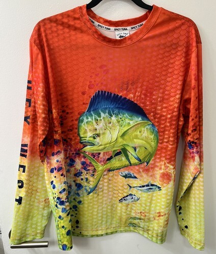 Spicy Tuna Shirt Mens Size M Fishing Performance Long Sleeve Mahi Mahi Dorado