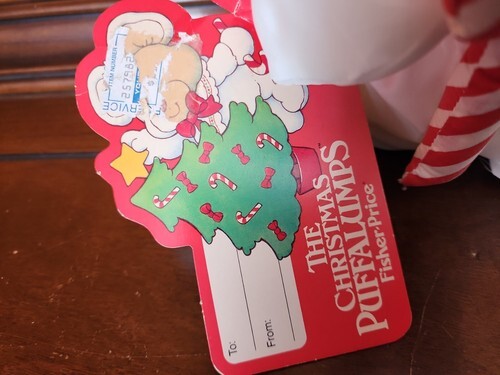 VTG 1988 Fisher-Price Puffalumps Nylon White Christmas Mouse Plush Stuffed Toy
