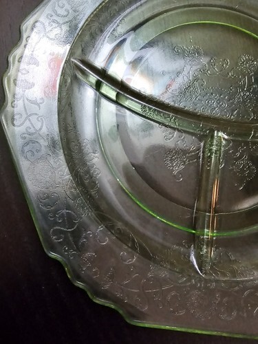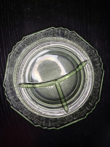 Hazel Atlas Florentine No 1 Pattern Uranium Glass Grill Plate Circa 1932-35