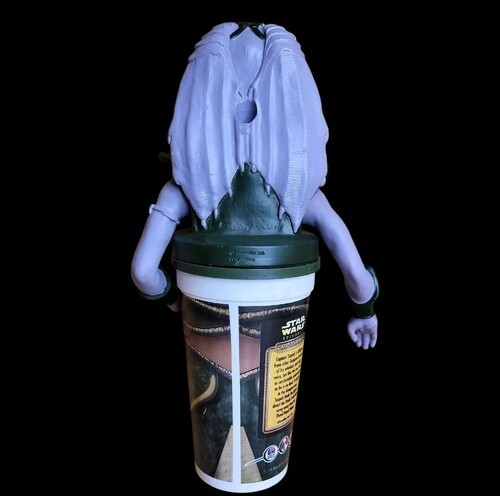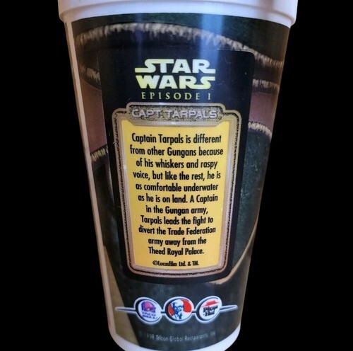UP FOR SALE: Vintage Disney STAR WARS EPISODE 1: THE PHANTOM MENACE - KFC, TACO BELL AND PIZZA HUT Promotional 32oz Cup and Figure Cup Topper 1999 Lucasfilm LTD. ARMS HAVE LIMITED ARTICULATION. There were originally 12 different movie characters available to collect, however, each restaurant had 4 characters exclusively for the promotion.