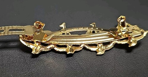 UP FOR SALE: Vintage Enamel Sailing Ships Blue Red and Goldtone Hair Clip Barrette