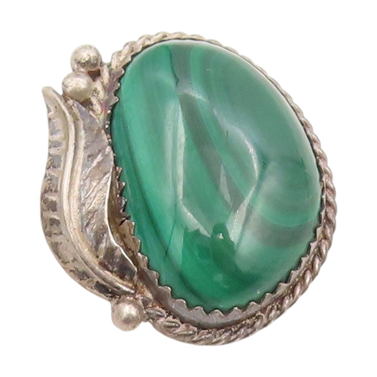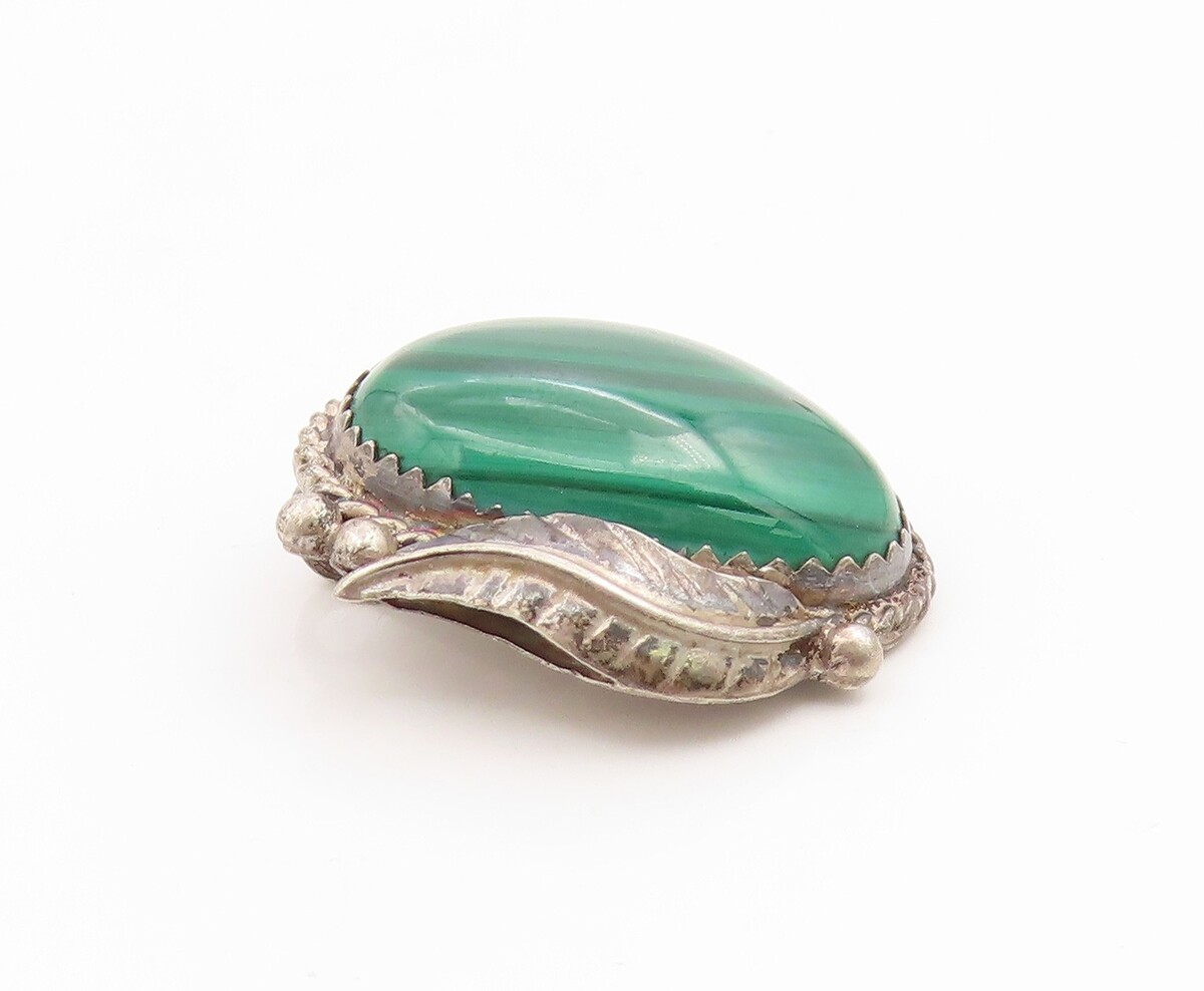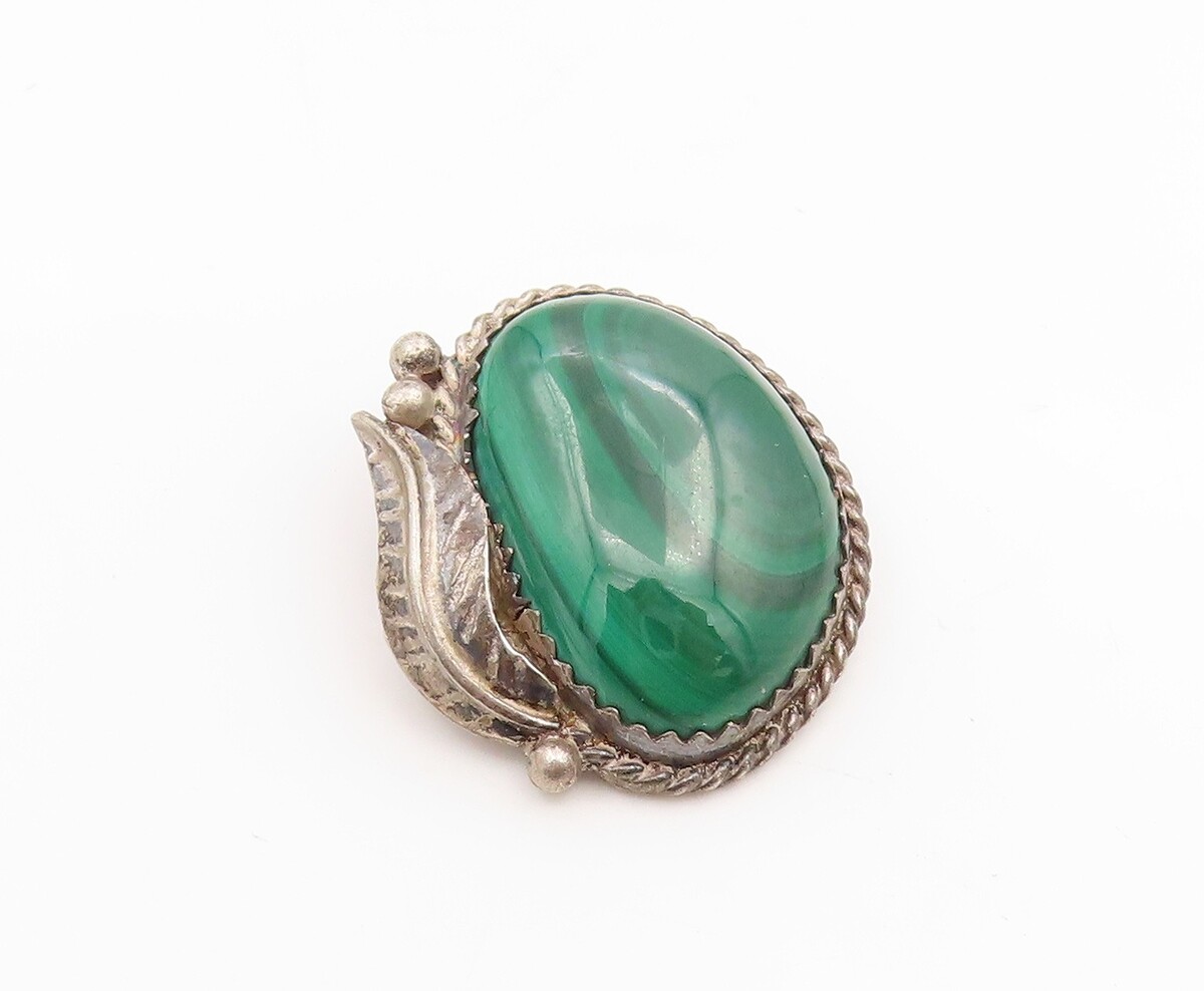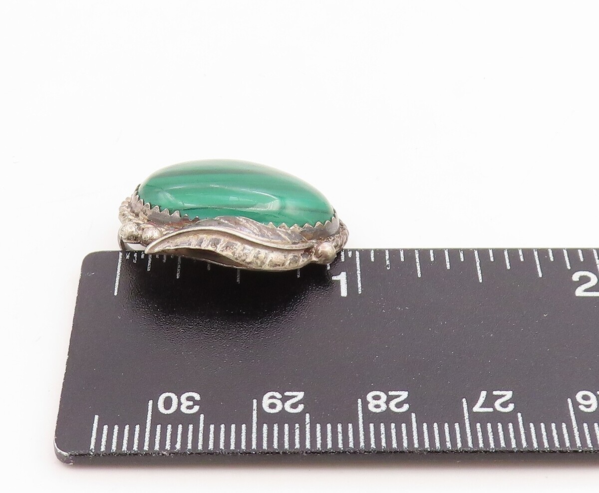 925 Sterling Silver Vintage Pendant NAVAJO Malachite Floral Leaf Charm PT25905