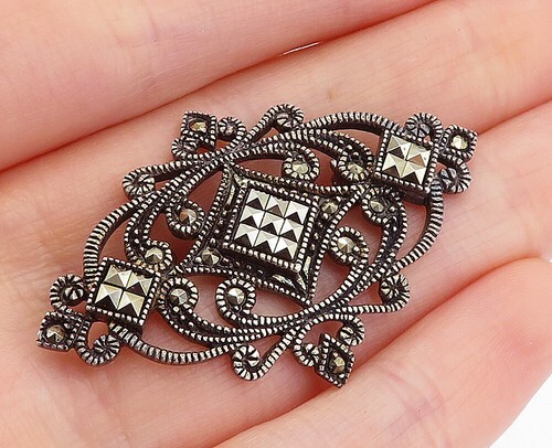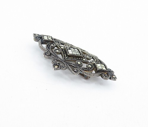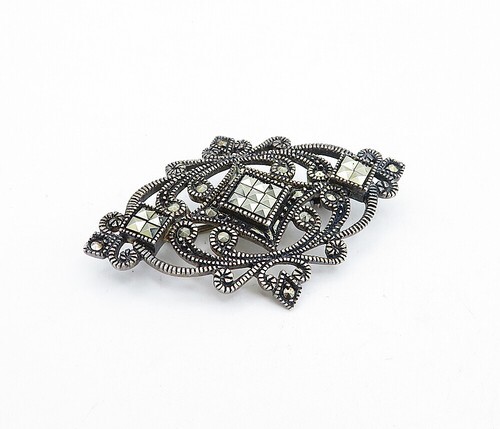 925 Sterling Silver Vintage Victorian Marcasite Swirl Brooch Pin BP1635