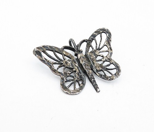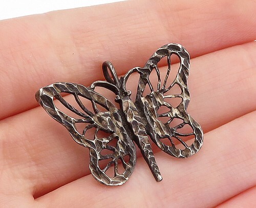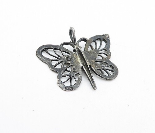 925 Sterling Silver Vintage Dark Tone Open Butterfly Motif Pendant PT3251
