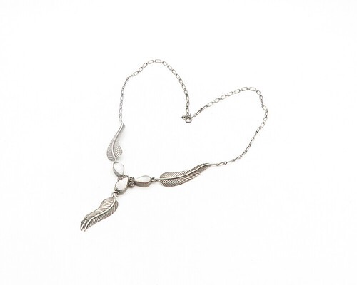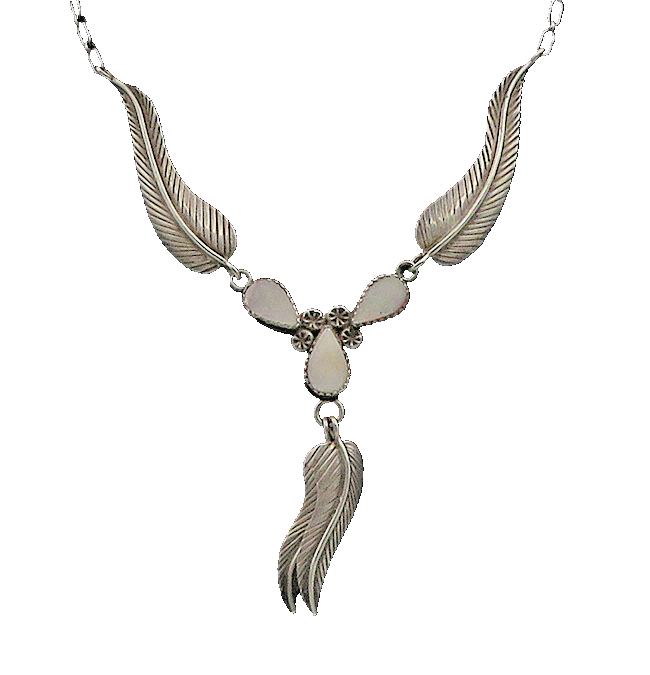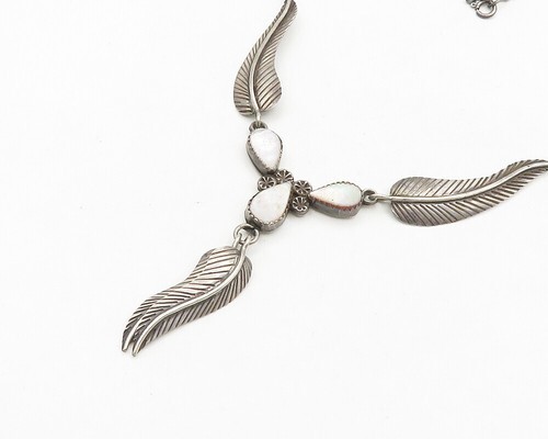 NAVAJO 925 Silver Vintage Mother Of Pearl Floral Leaf Chain Necklace NE3109
