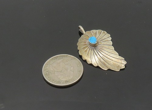 NAVAJO 925 Sterling Silver Vintage Turquoise Floral Leaf Pendant PT16286