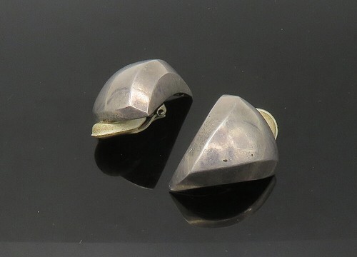 925 Sterling Silver Vintage Heavy Modernist Non Pierce Earrings EG10977