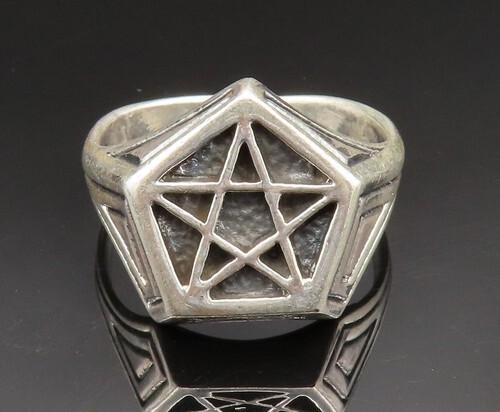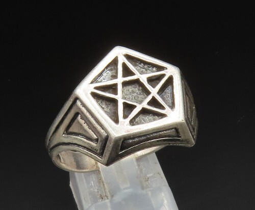 925 Sterling Silver Vintage Masonic Pentagram Signet Ring Sz 13 RG24916
