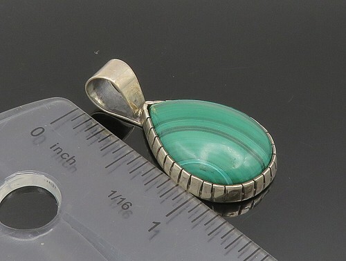 NAVAJO 925 Sterling Silver Vintage Pear Shaped Malachite Drop Pendant PT20197