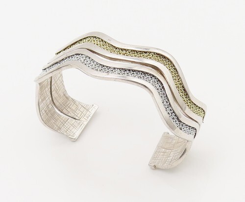 ADAMI & MARTUCCI 925 Silver Vintage Two Tone Mesh Wavy Cuff Bracelet BT9791