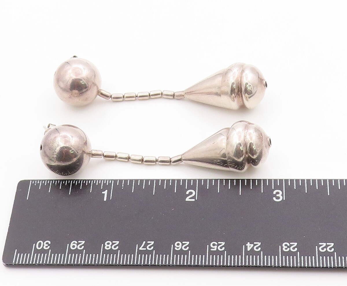 925 Sterling Silver Vintage Earrings Modern Tear Drops & Sphere Design EG13701