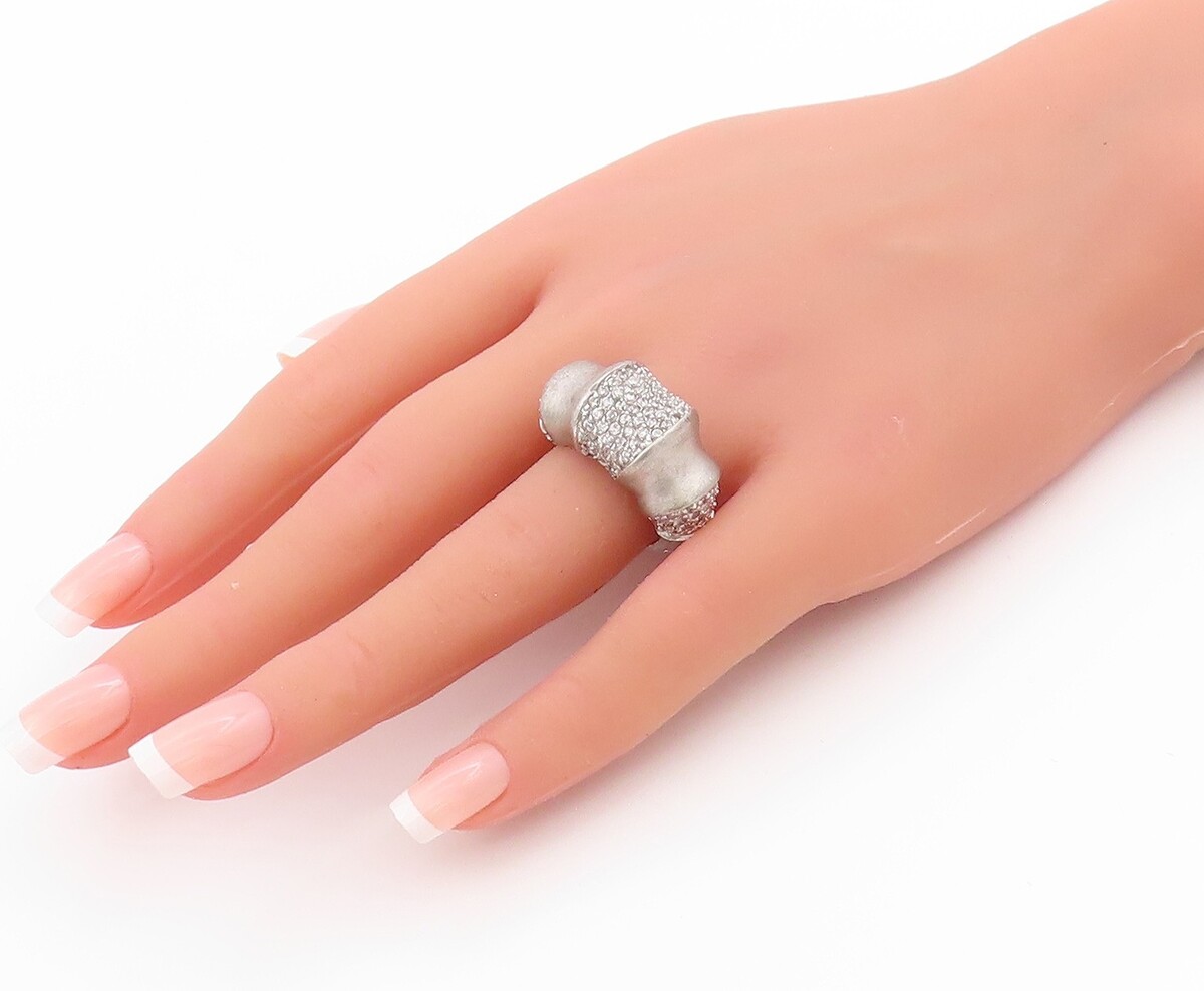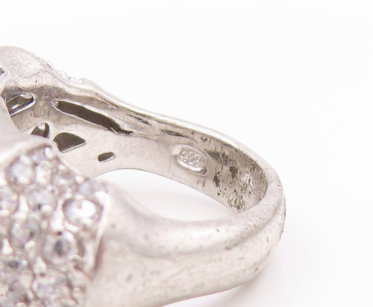 925 Sterling Silver Vintage Ring Sparkling CZ Encrusted Band Sz 7.5 RG33538