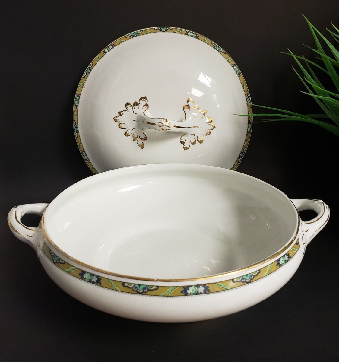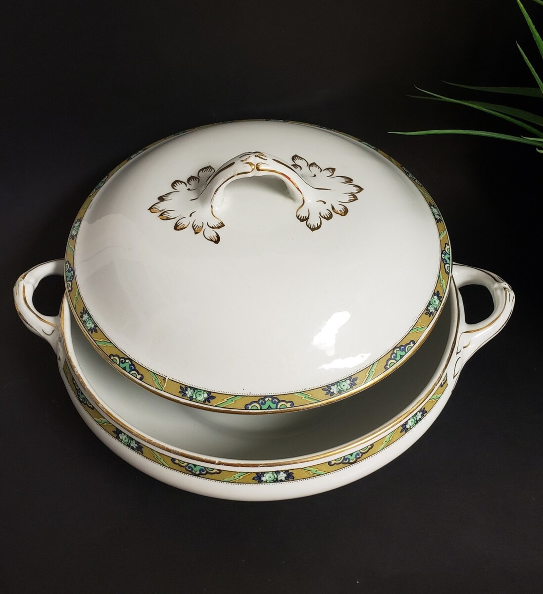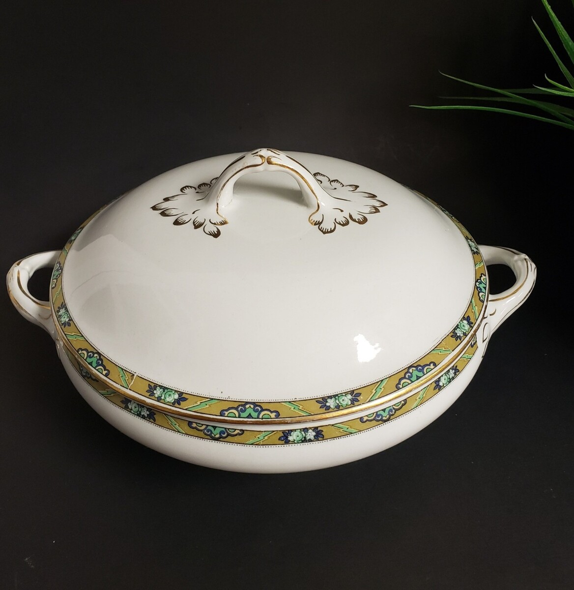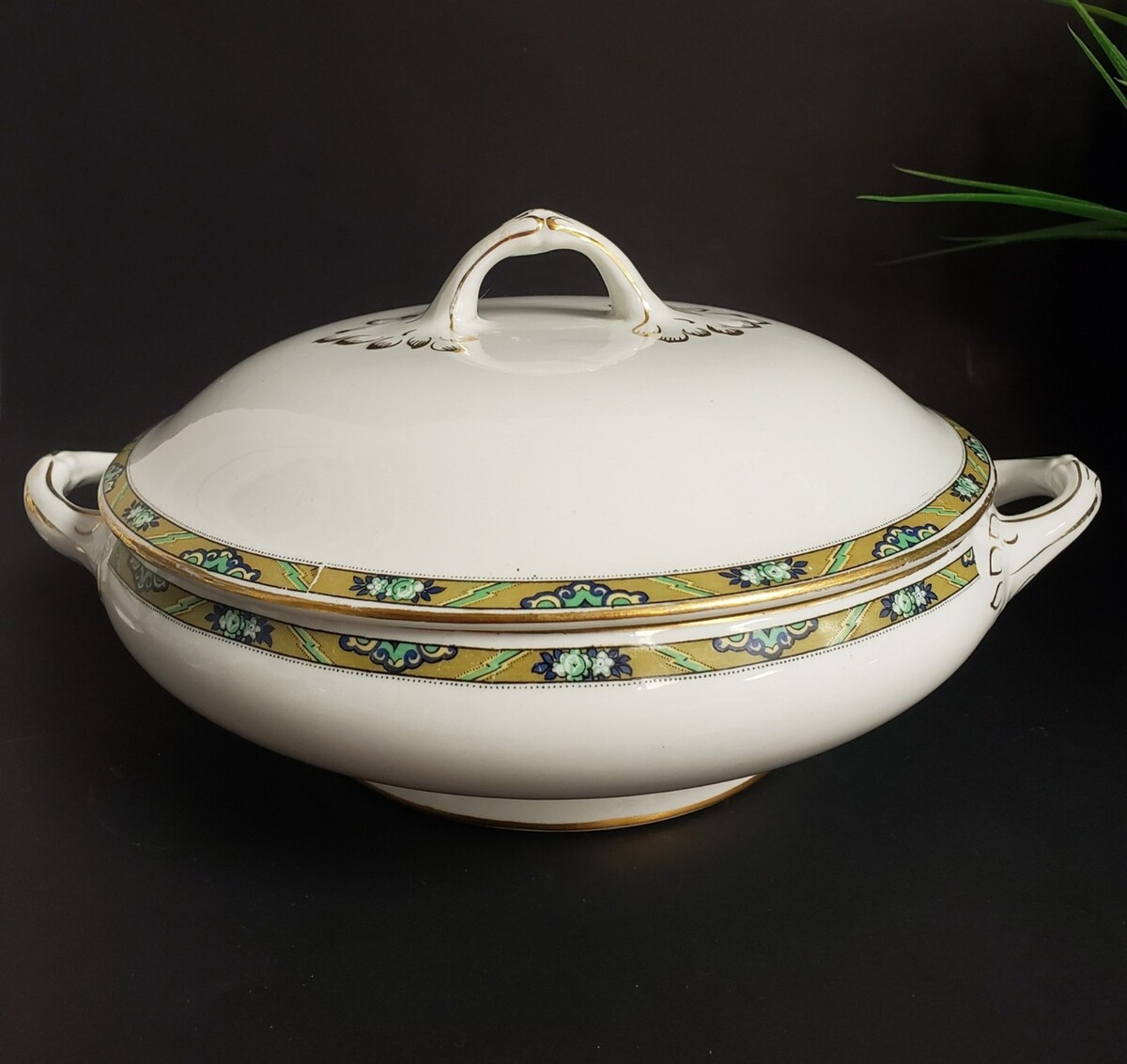 Wood & Sons Ltd. Burslem England Hand Painted Gold Trim Lidded Porcelain Tureen