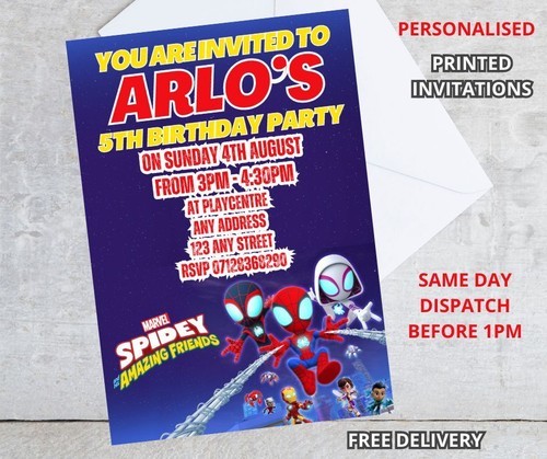 Spidey And His Amazing Friends Birthday Party Invitations 12 with envelopes