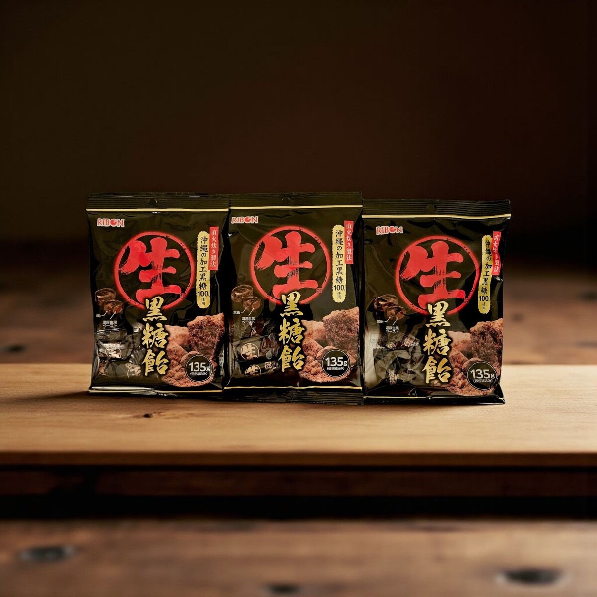 Ribon Nama Kokuto Ame Japanese Brown Sugar Handy Candies 4.7oz - Pack of Three