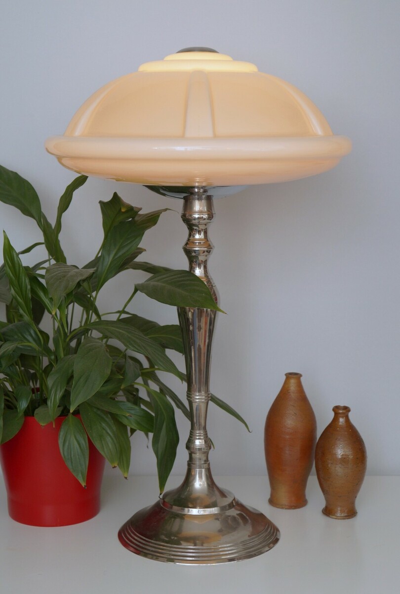 Bauhaus Nickel-Chrom screaming tablet lamp with a beautiful patina.