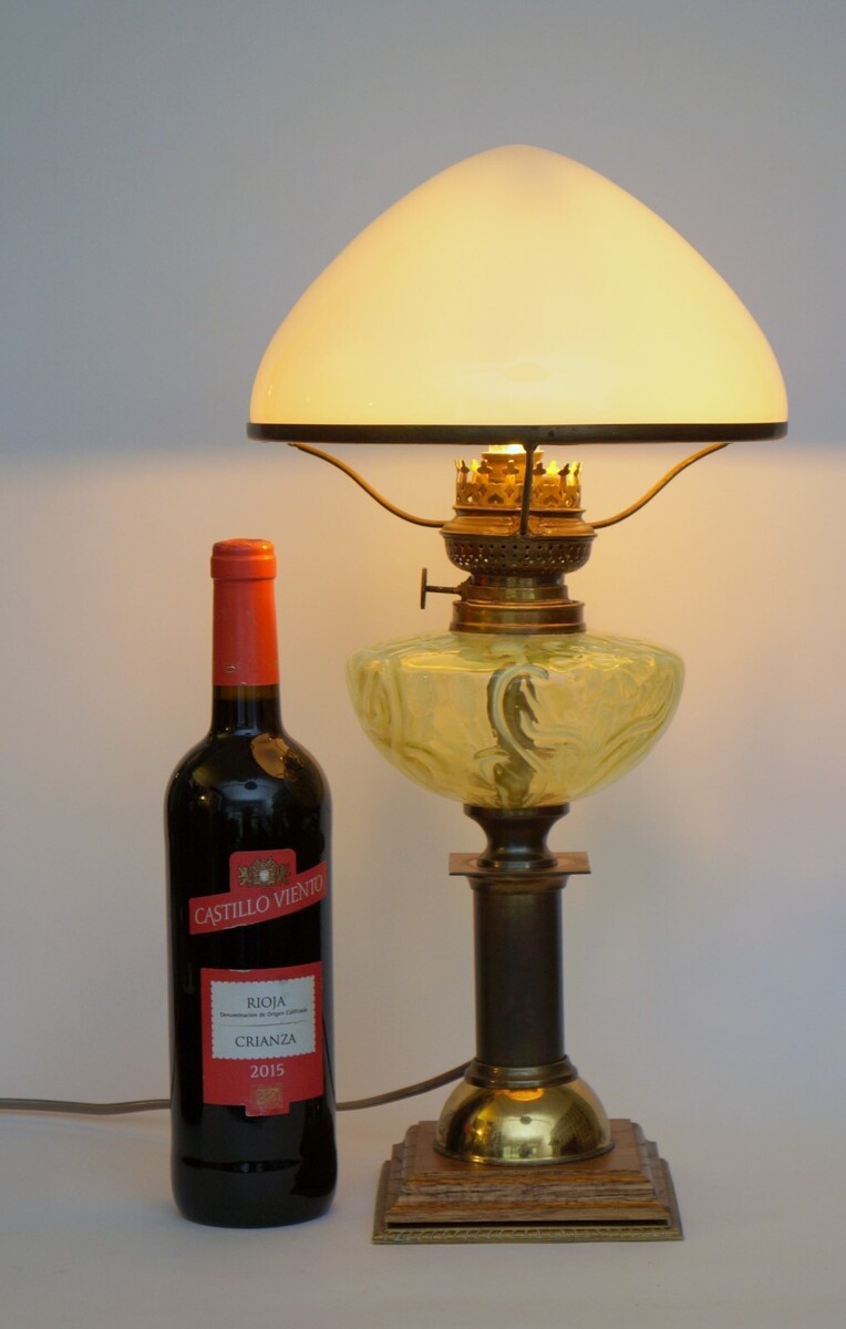 Original Art Nouveau Table Lamp " Lancaster " 1900 Kerosene Lamp