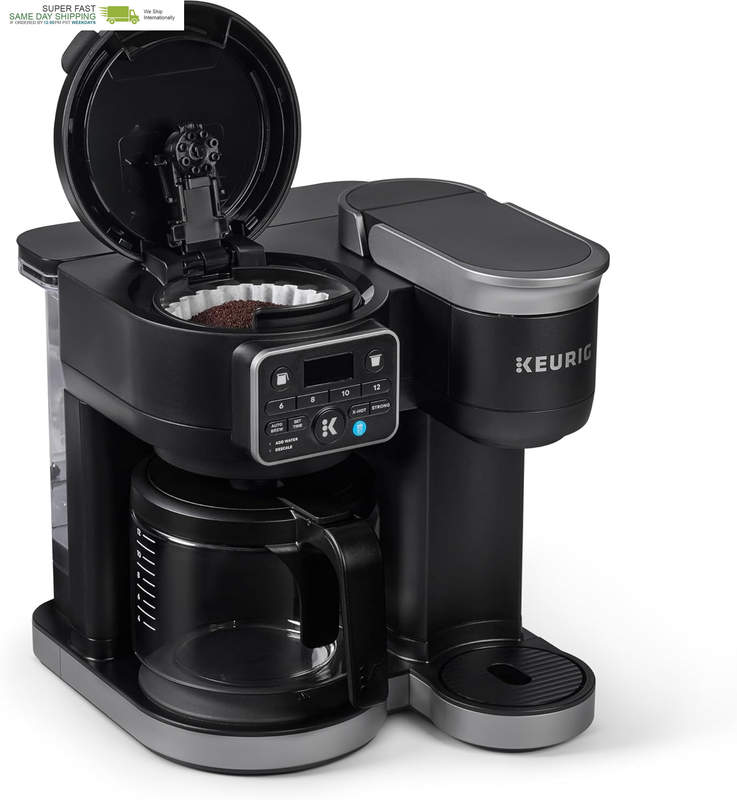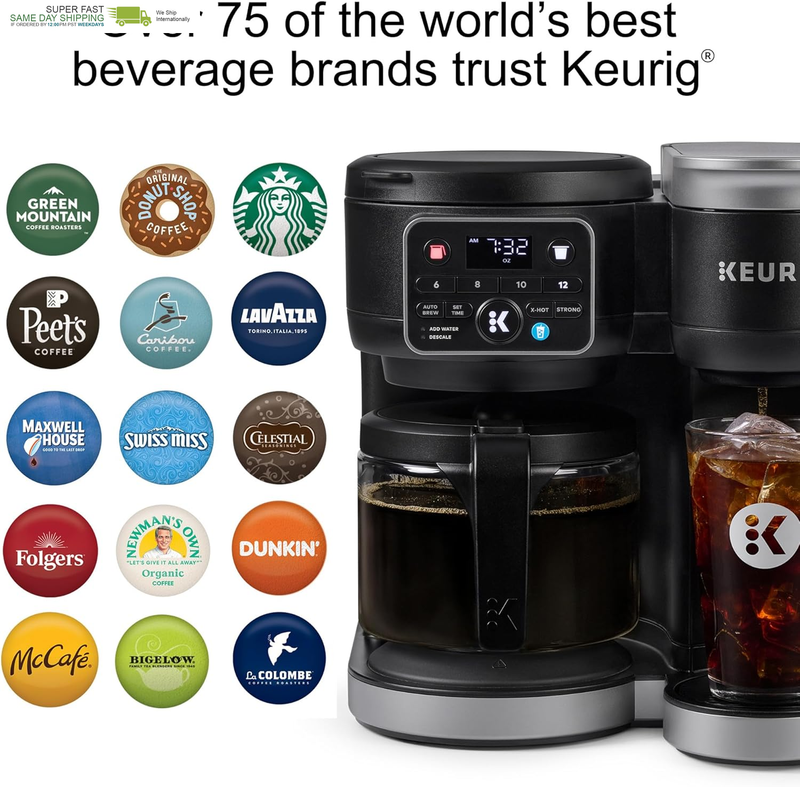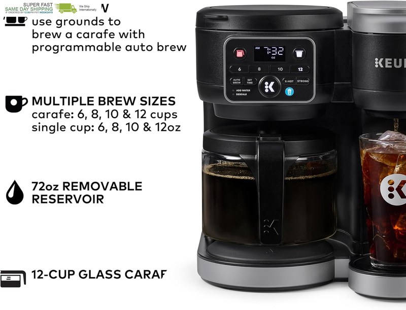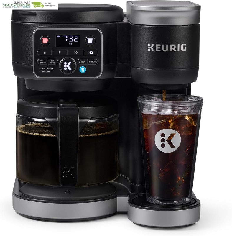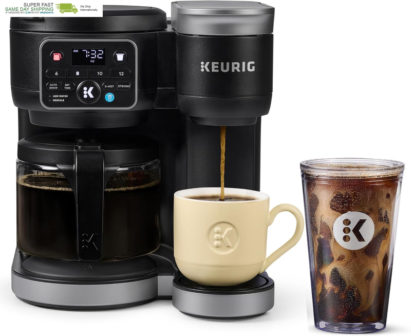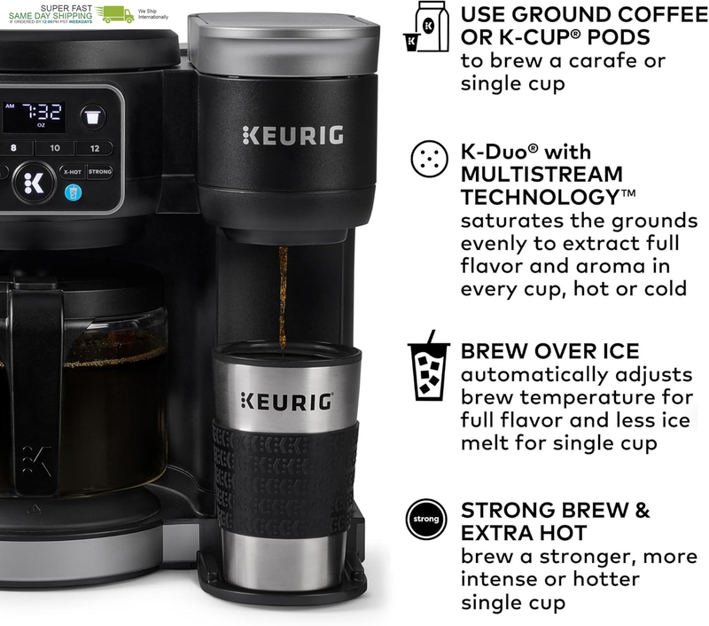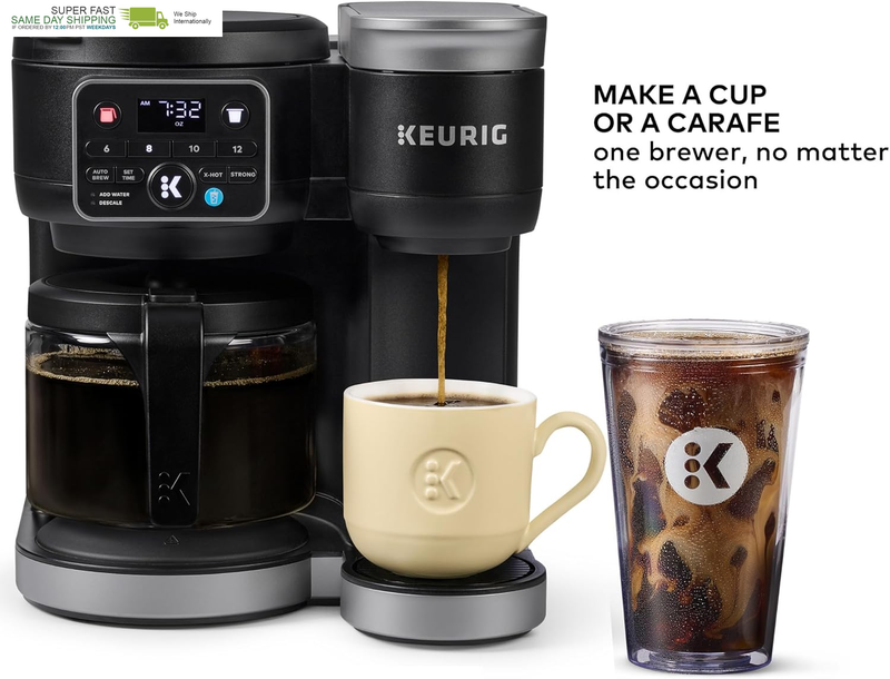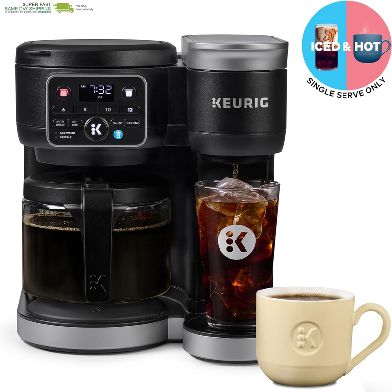 Make every holiday moment magical with the Keurig K-Duo Single Serve Carafe Coffee Maker, the ultimate gift for coffee lovers and a must-have for festive gatherings. This versatile brewer lets you brew a single cup or a full carafe, so you can serve yourself or a crowd with ease. Perfect for cozy mornings, holiday brunches, or entertaining guests, the K-Duo brings convenience and cheer to every cup. Featuring a sleek design and an extra-large 72 oz removable reservoir, this brewer minimizes refills and is ideal for busy holiday hosting. The single-serve side works with any K-Cup pod and offers multiple brew sizes (6, 8, 10, or 12 oz), while the carafe side brews up to 12 cups of your favorite ground coffee. With MultiStream Technology, every brew delivers rich flavor and aroma, whether hot or iced. Enjoy seasonal favorites with Brew Over Ice for refreshing iced coffee or tea, Strong Brew for bold holiday flavor, and Extra Hot for an extra-steamy cup on chilly mornings. Plus, programmable Auto Brew lets you schedule your carafe up to 24 hours in advance, perfect for stress-free holiday mornings. Complete with a redesigned glass carafe and heating plate, the K-Duo ensures every sip stays warm and delicious. From festive family breakfasts to cozy nights by the fire, this brewer is built for celebration. Add it to your holiday gift guide and make every cup a reason to celebrate.