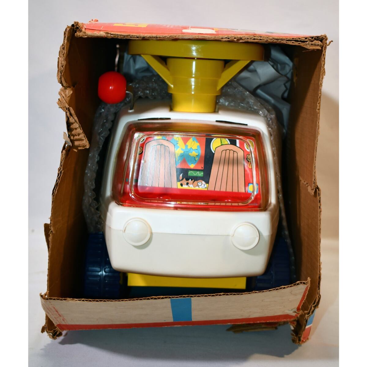 This six-wheeled wonder is ready for a new generation of explorers. It has been made in the USA, it is a durable and nostalgic piece that will provide hours of imaginative play. This one is hard to find in such good shape WITH its original box!!! The box is in rough shape however the people who come with it are completely sealed!!!