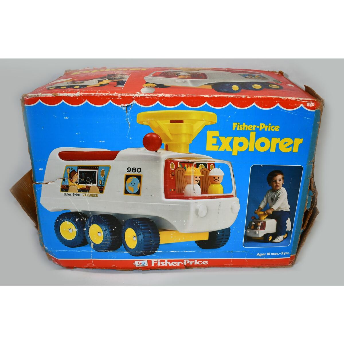 Blast off into fun with this vintage Fisher-Price Space Explorer ride-on ATV! This classic toy, model 980, comes with its original box, adding to its collectible appeal.