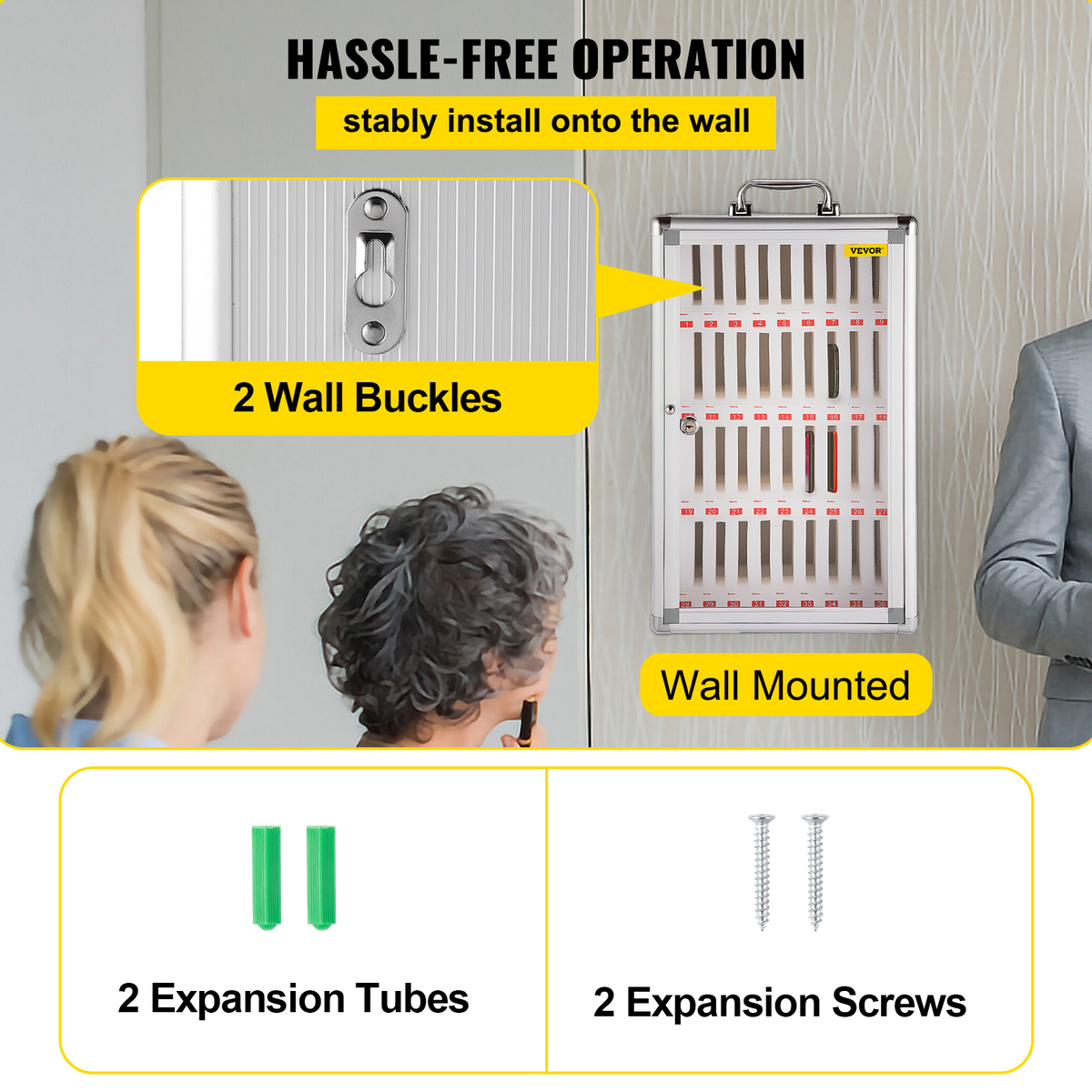 Wall Mounted Design: There are 2 ways to place our cell phone storage cabinet, free-standing on the table or mounted on the wall. There are 2 wall buckles on the back for quick and easy installation on the wall, and all screw fittings are provided.