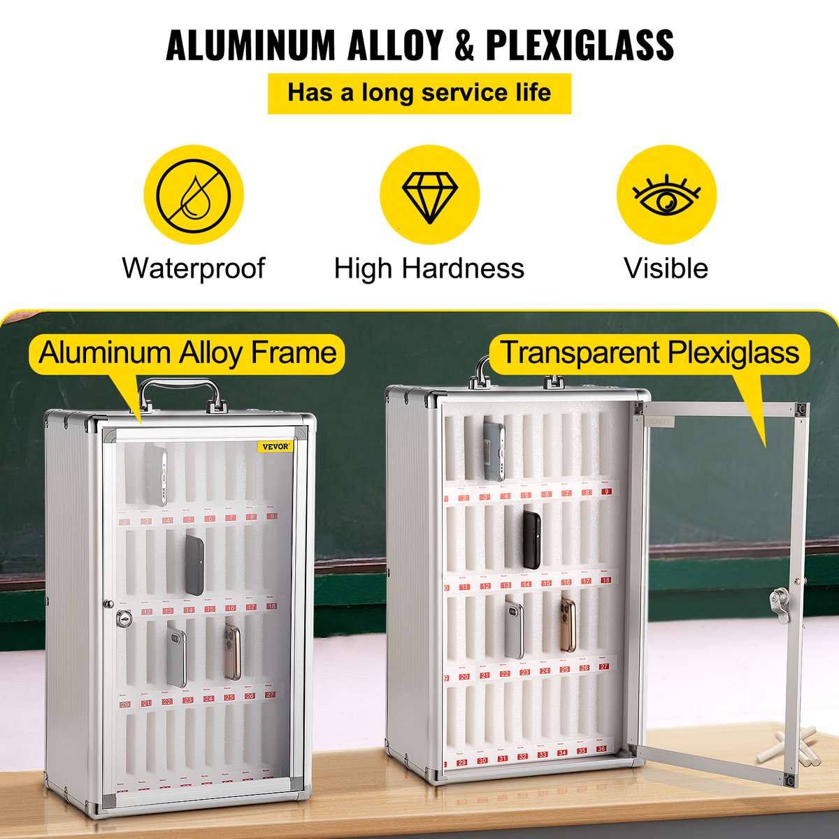 VEVOR 36 Slots Cell Phone Cabinet Aluminum Alloy Chart Storage Locker Box