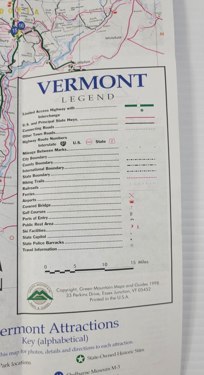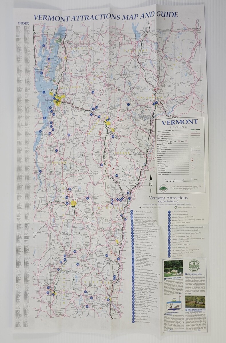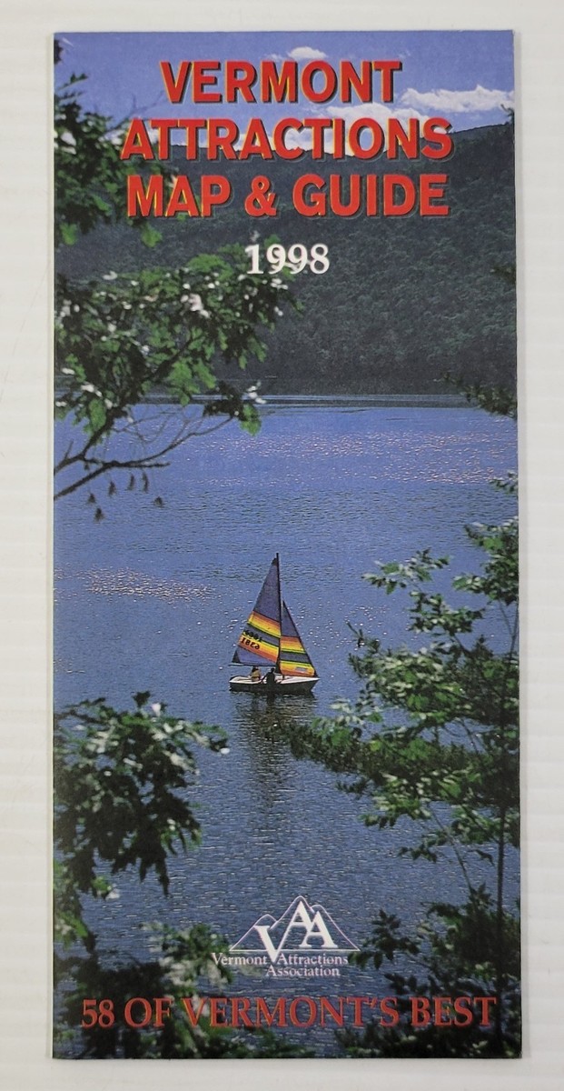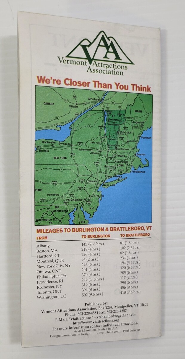 *L1) Vintage 1998 Vermont Foldable Attractions Map & Guide