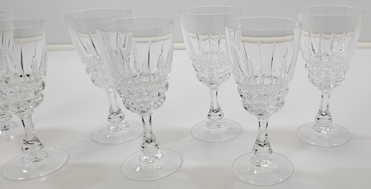 *N) Vintage Cristal d’Arques Pedestal Wine Glasses - 6-3/4" Tall - Set of 7