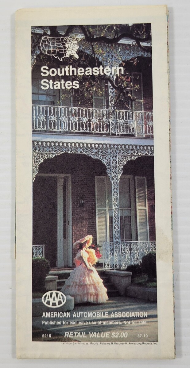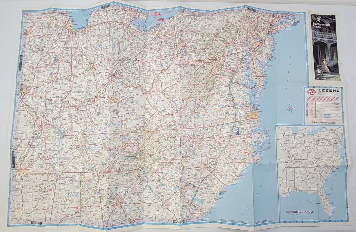 *L1) Vintage 1988 Edition AAA Southeastern States Foldable Travel Road Map