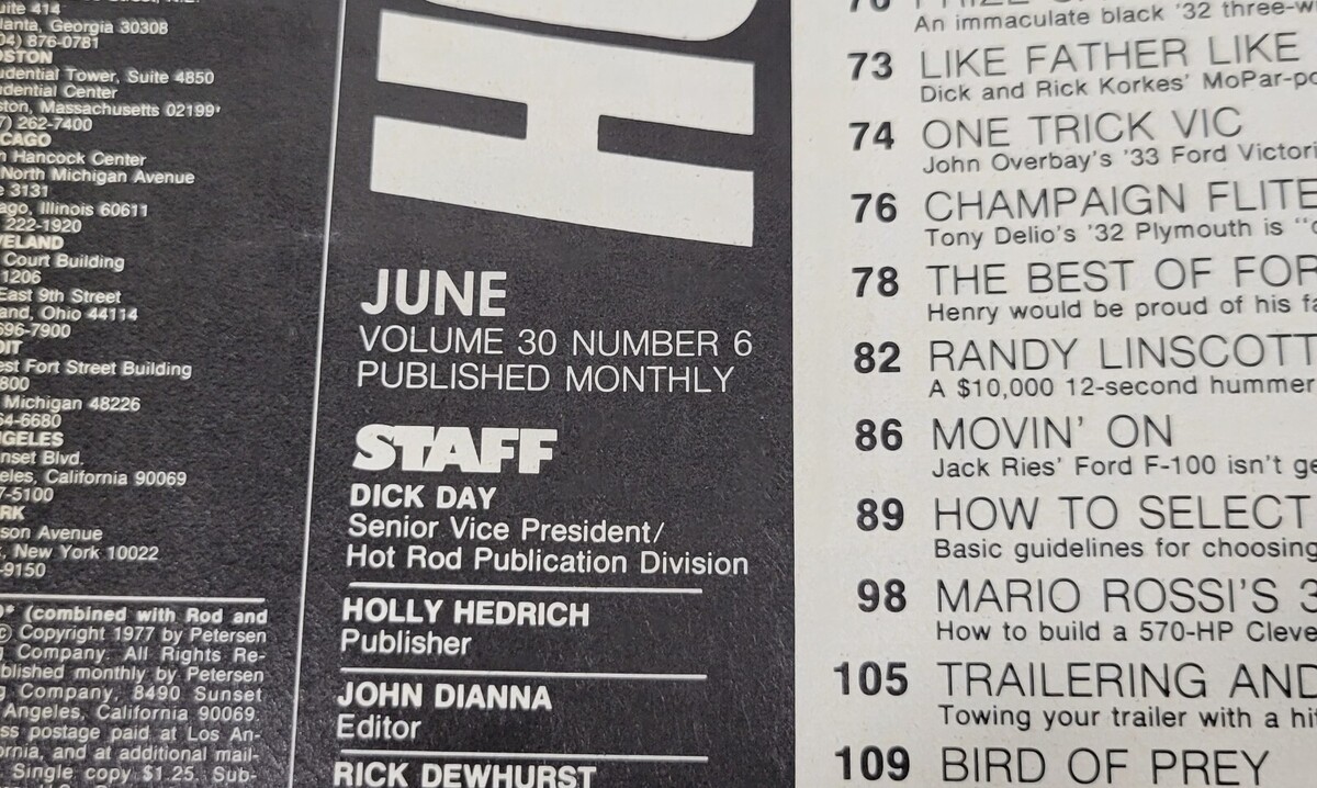 PV) Hot Rod Magazine June 1977 Volume 30, Issue 6 Chevrolet Ford Dodge Mopar