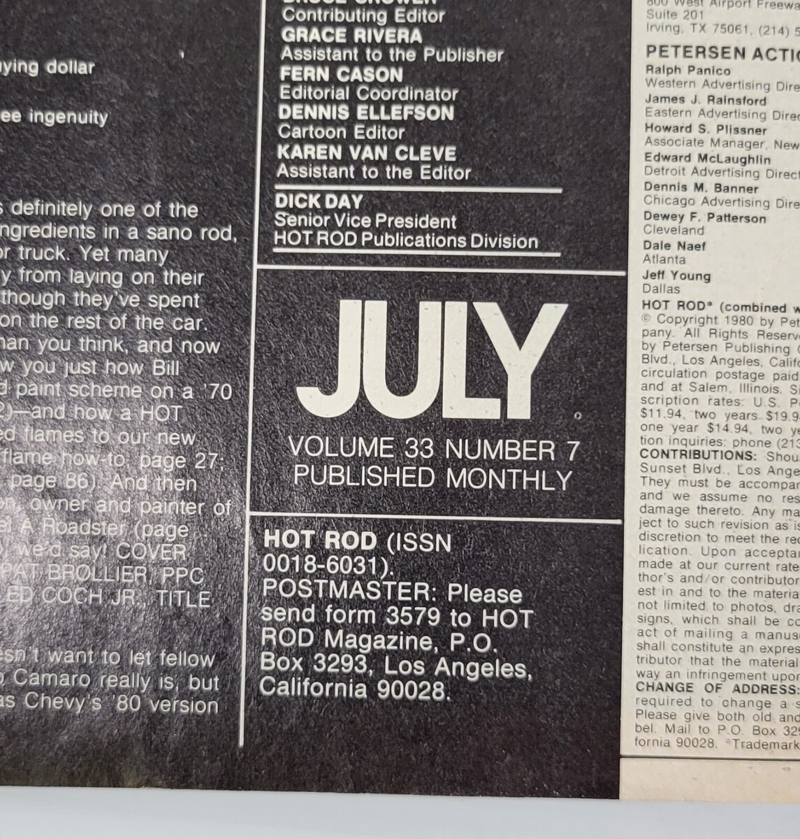 PV) Hot Rod Magazine July 1980 Volume 33 Issue 7 Chevrolet Ford Dodge Mopar