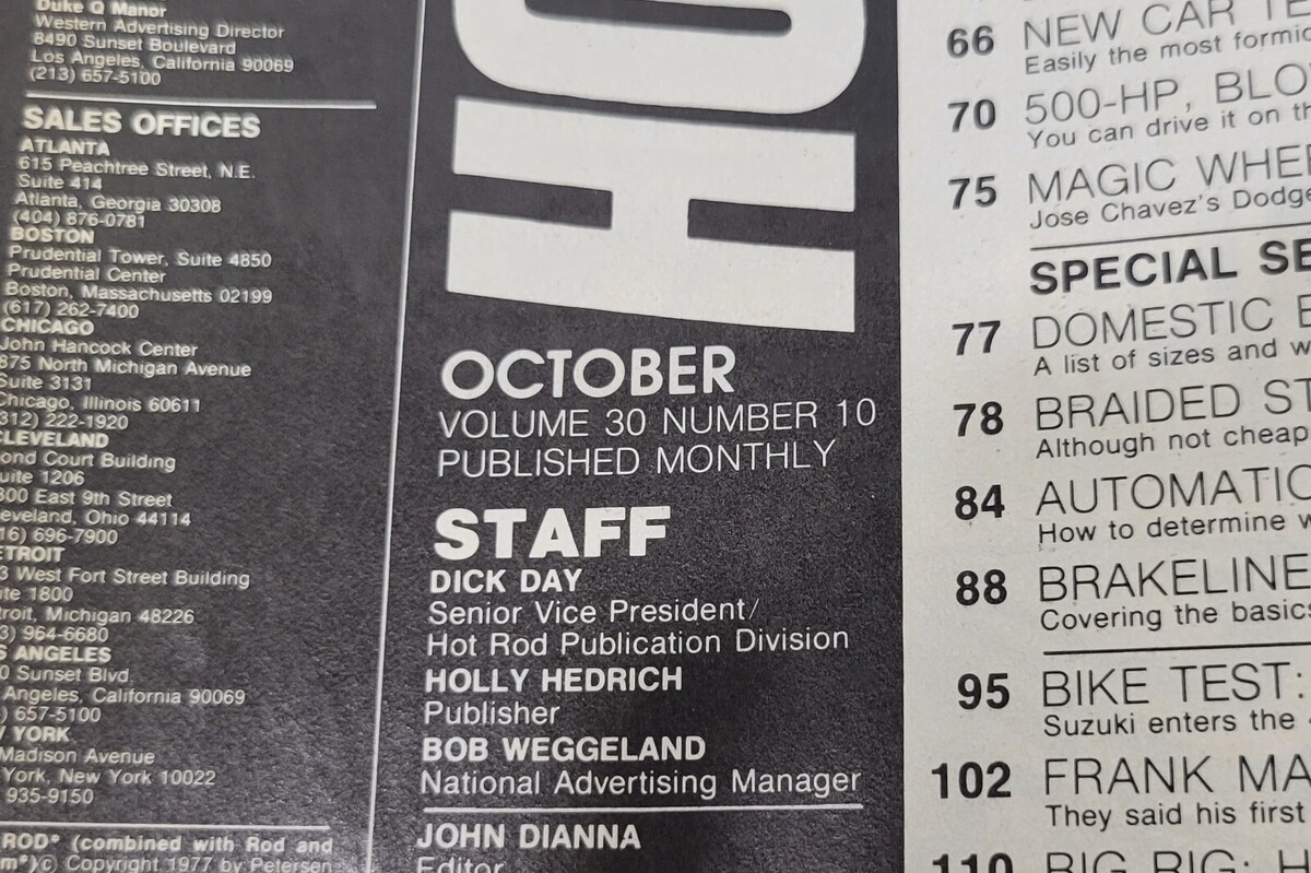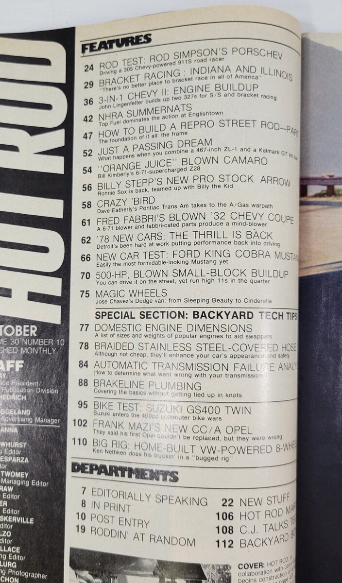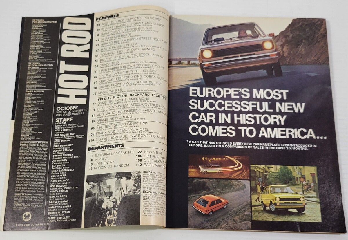 PV) Hot Rod Magazine October 1977 Volume 30 Issue 10 Chevrolet Ford Dodge Mopar