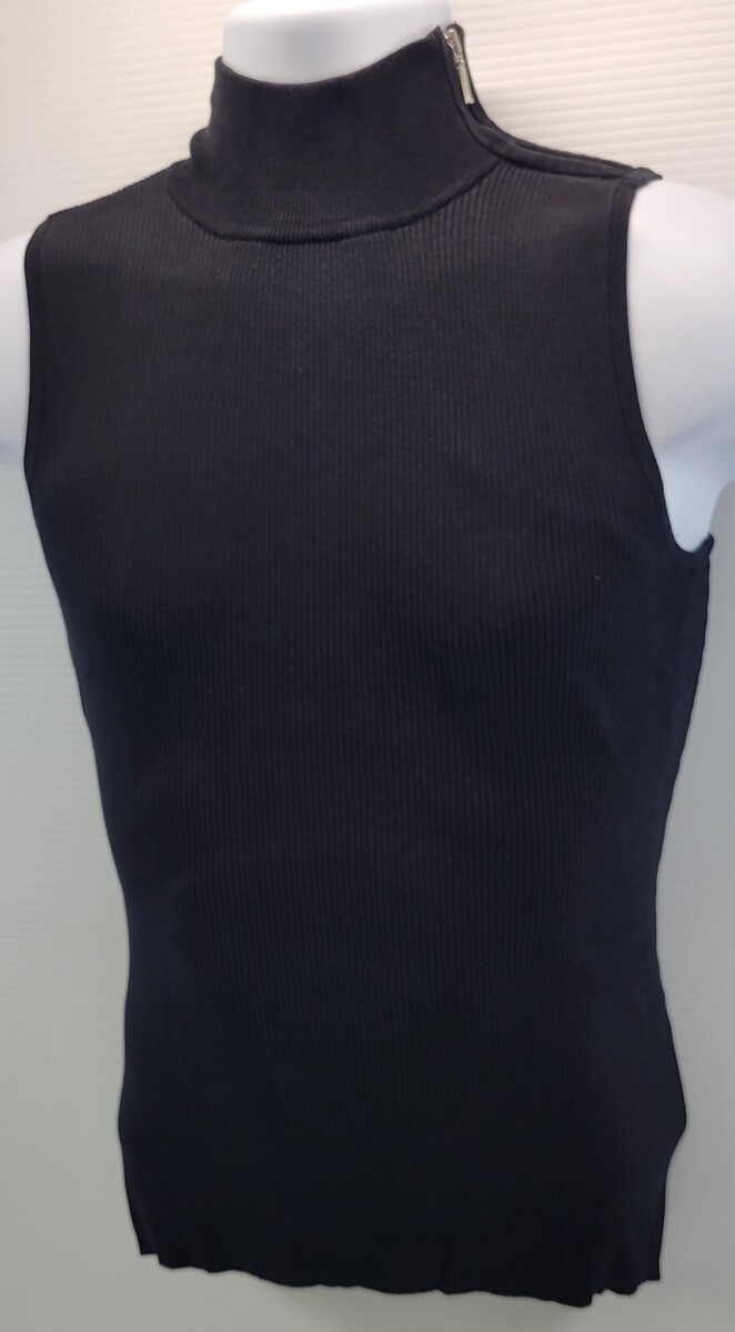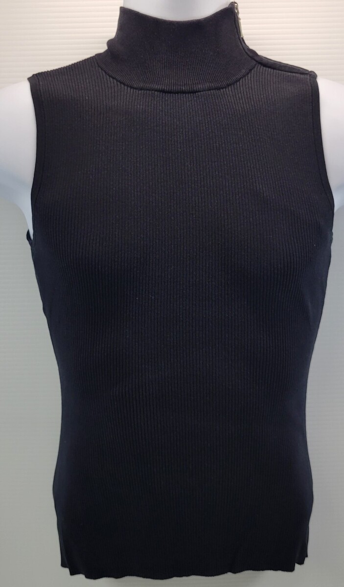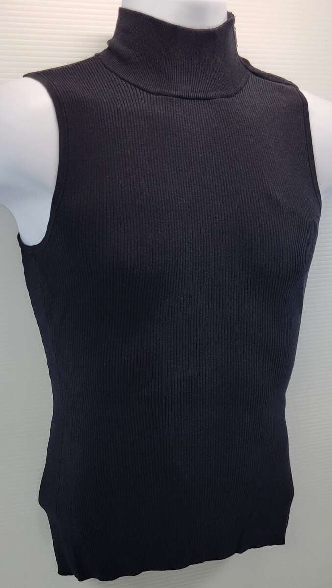 INC International Concepts Black Ribbed Sleeveless Top Shirt