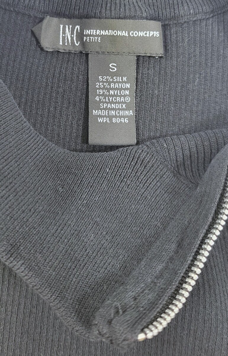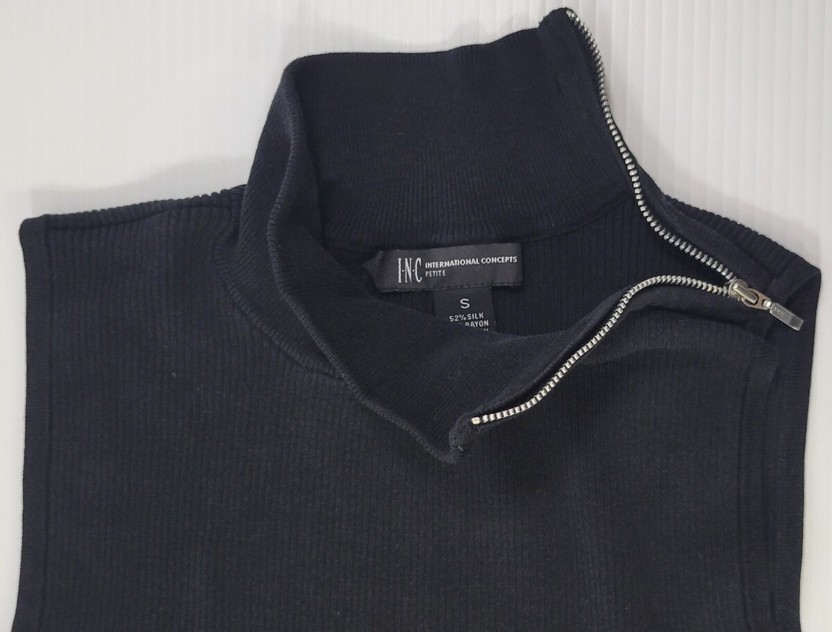 A) INC International Concepts Woman Petite Black Ribbed Sleeveless Top Shirt