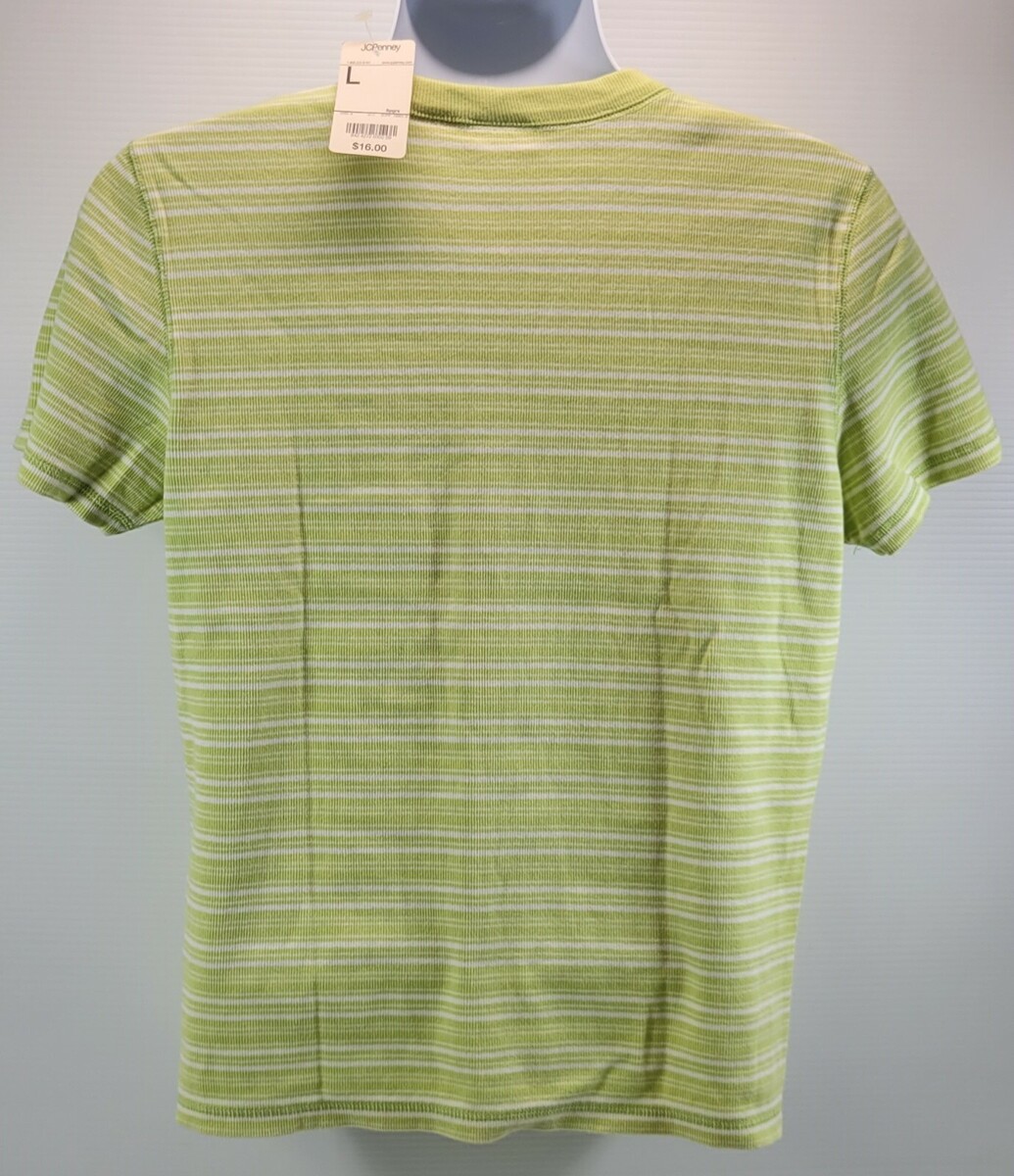 MM) St Johns Bay Stretch Striped Green Women's Split Crew Shirt Large