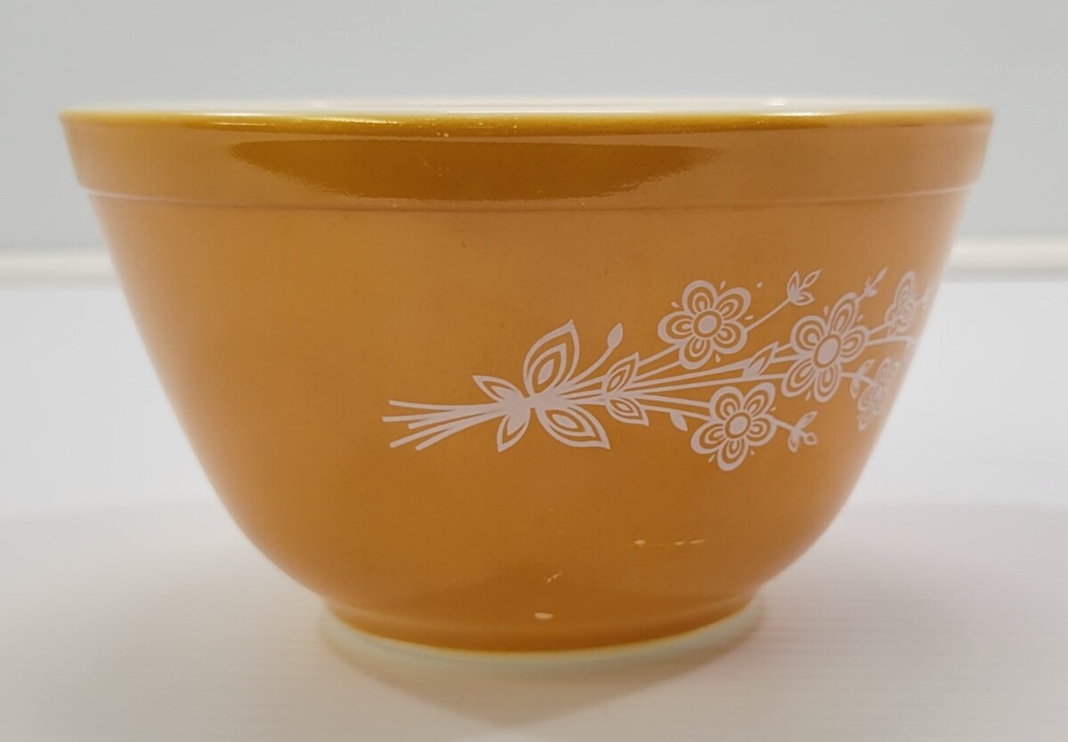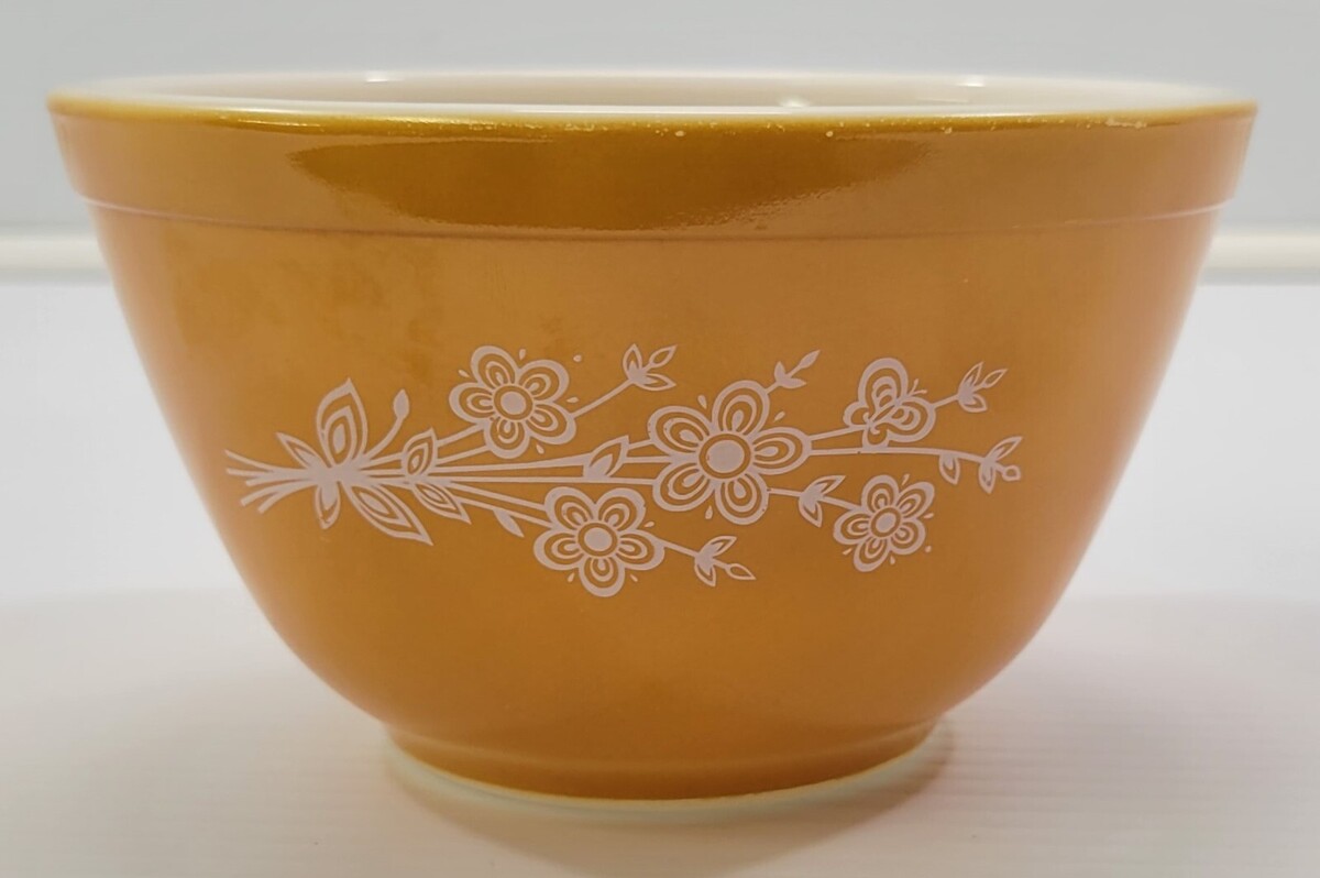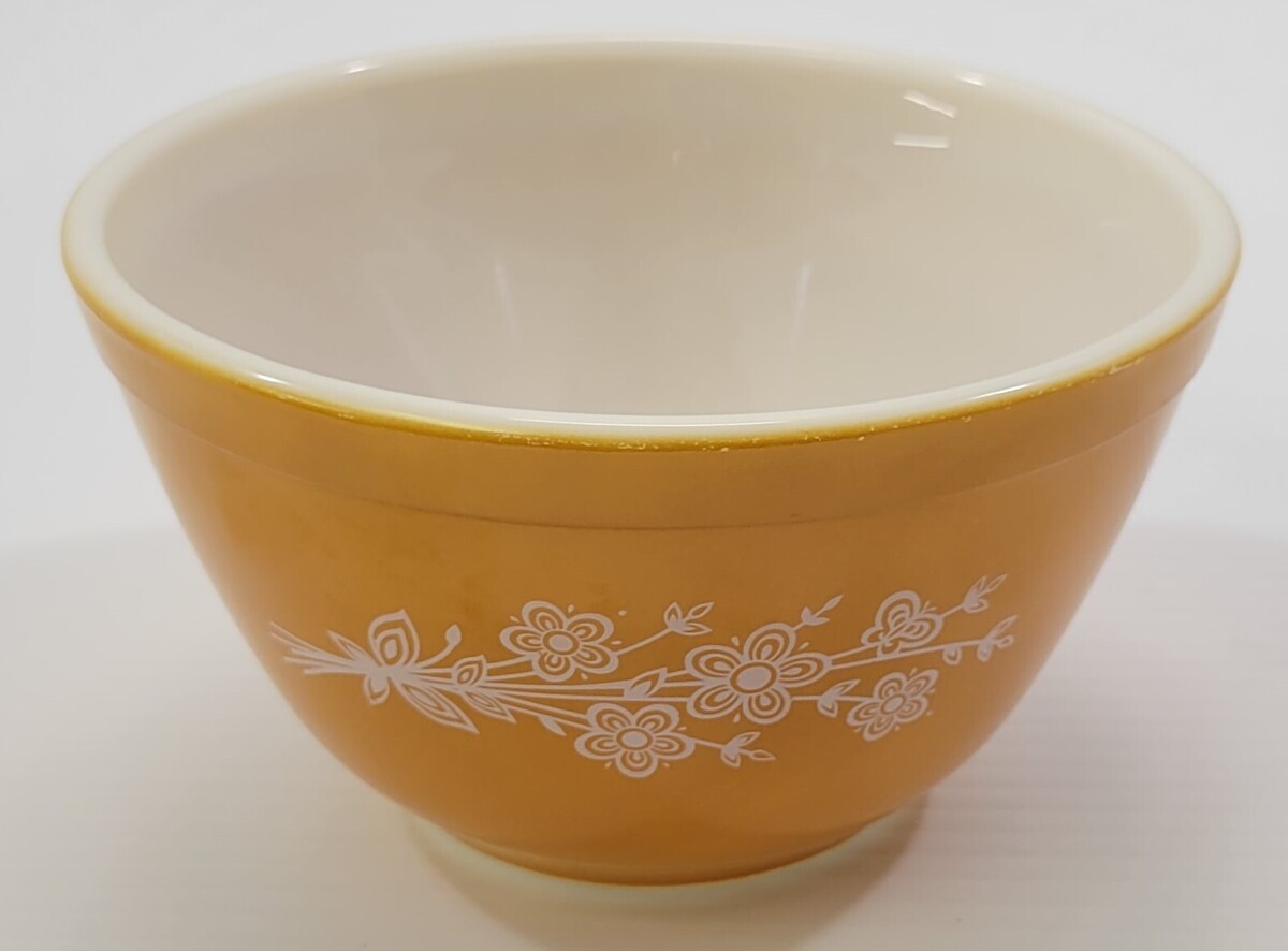 *CB1) Vintage Pyrex Butterfly Gold Orange Brown Nesting Round Bowl 401 750 ml