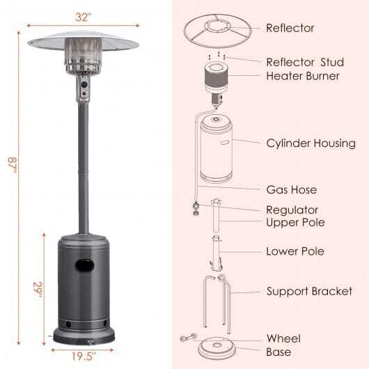 Garden Propane Standing LP Gas Steel Accessories Heater-Silver Gr |