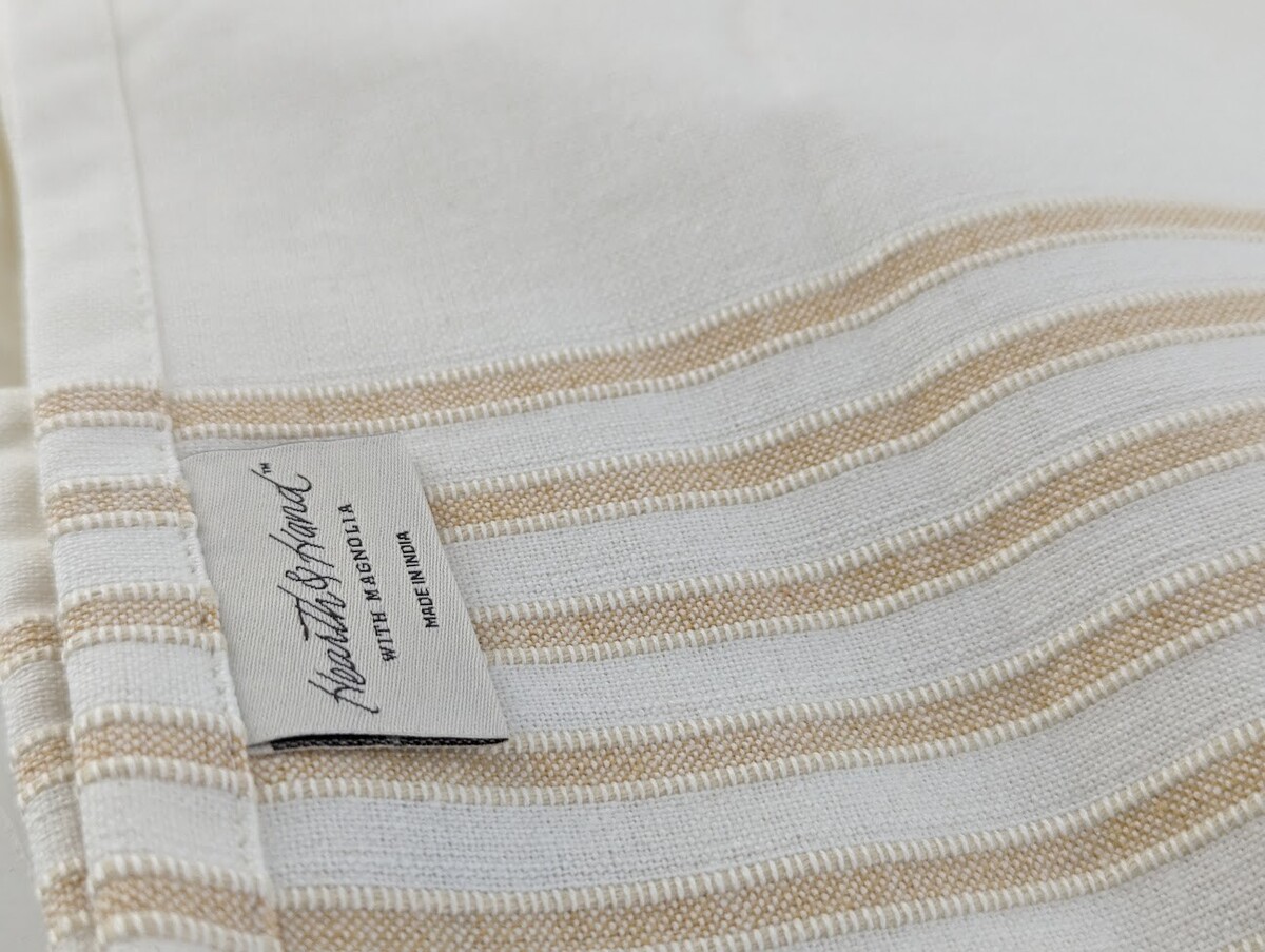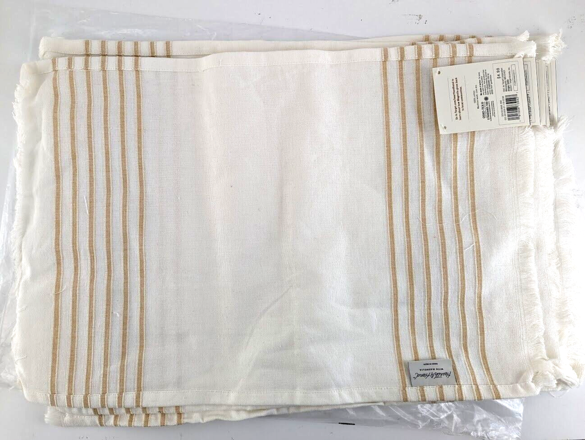 12pk Hearth Hand Magnolia Placemat Tick Stripe Pattern Table Setting Gold Cotton