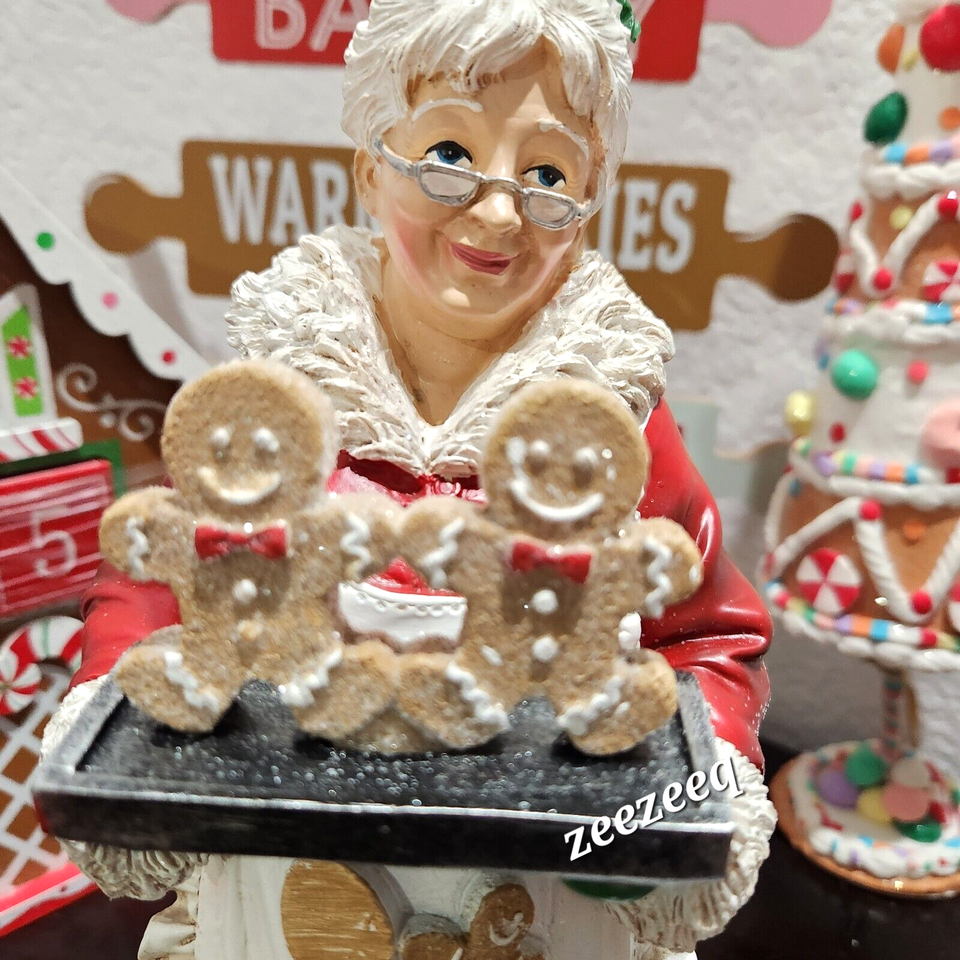 Christmas Mrs Clause Baking Gingerbread Cookies Bakery Candy Land Figurine Decor