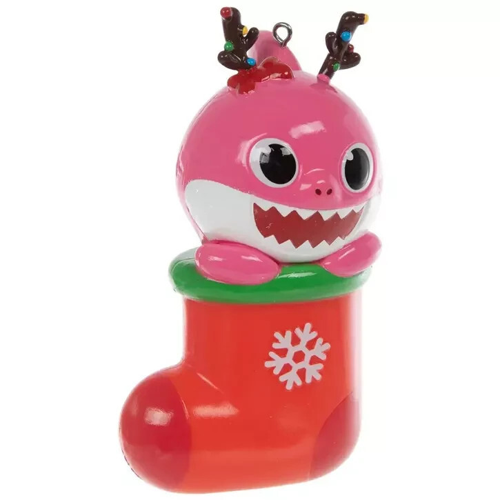 Decorate your tree with a jaw-some friend, such as this Mommy Shark In Stocking Ornament. This ornament is shaped like Mommy Shark wearing antlers and sitting in a stocking. Just one look and the iconic melody will start ringing in your head again. Hang this shark next to colorful decorations for a display your kiddos will absolutely love.