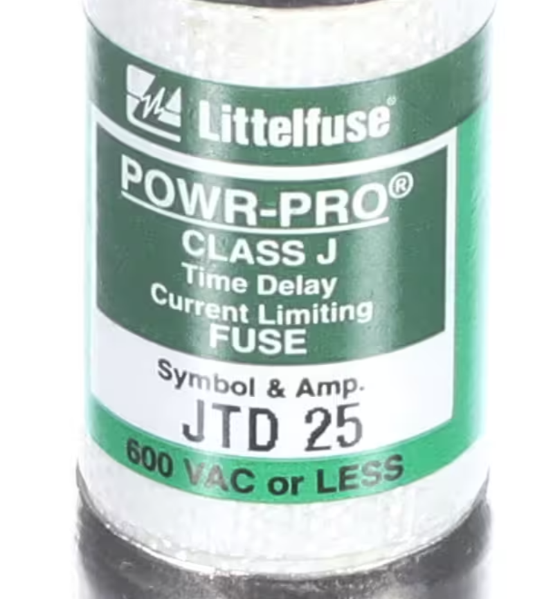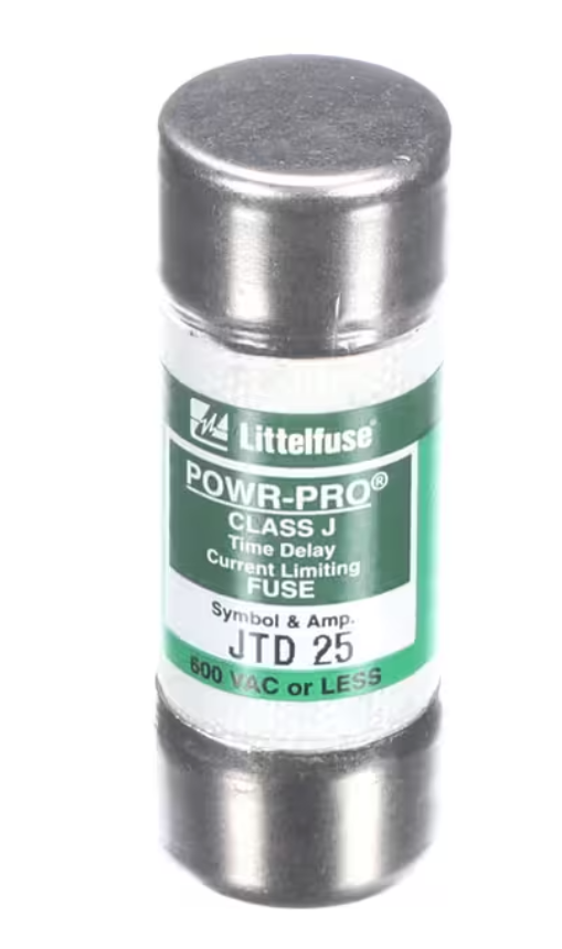 Trane JTD 25 Fuse is a genuine OEM time-delay (slow-blow) fuse designed to provide reliable overcurrent protection in Trane HVAC and electrical systems. Rated at 25 amps and 600VAC, this Class J fuse allows temporary inrush currents while protecting critical components from sustained overloads and short circuits. Manufactured to Trane specifications, it ensures consistent performance, system safety, and long service life in demanding applications.