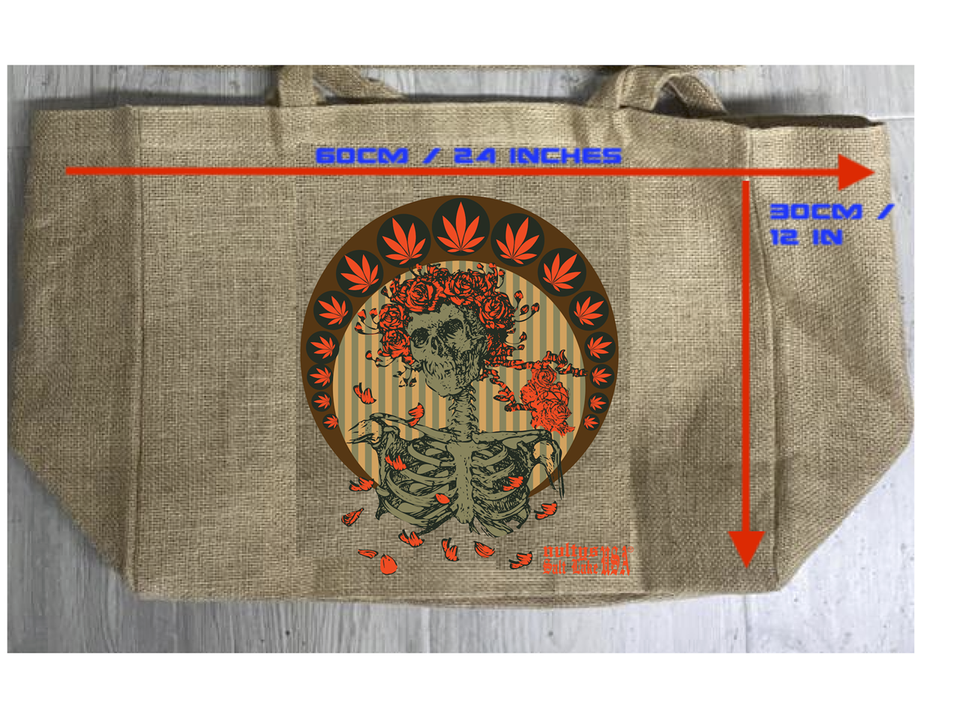 QUEEN OF HEARTS MARIJUANA BURLAP TOTE BAG #965 SKULL ROSES Reusable art