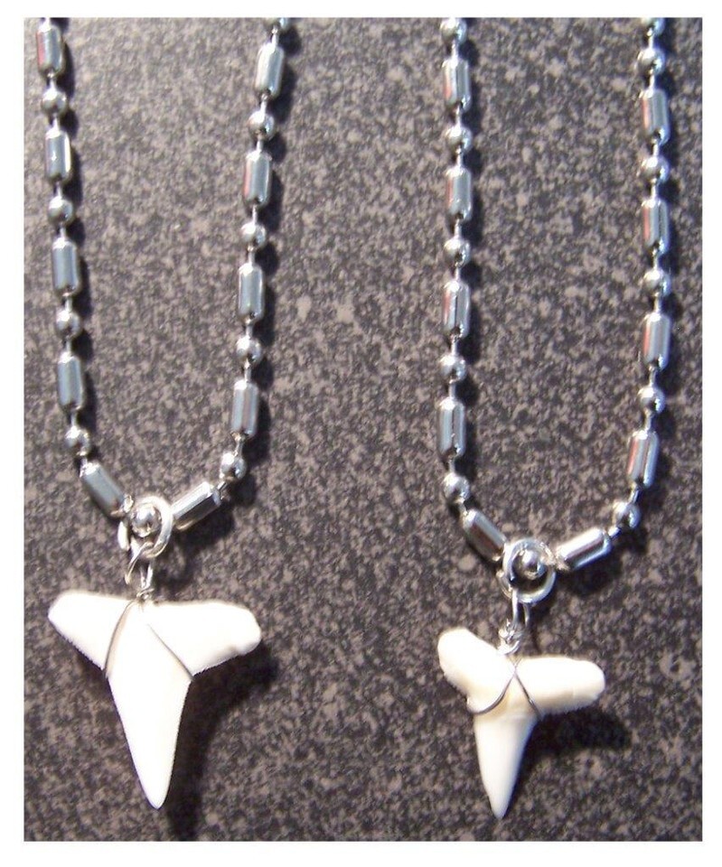 STAINLESS STEEL 18" BALL CHAIN NECKLACE W SHARKS TOOTH PENDANT necklaces jewelry