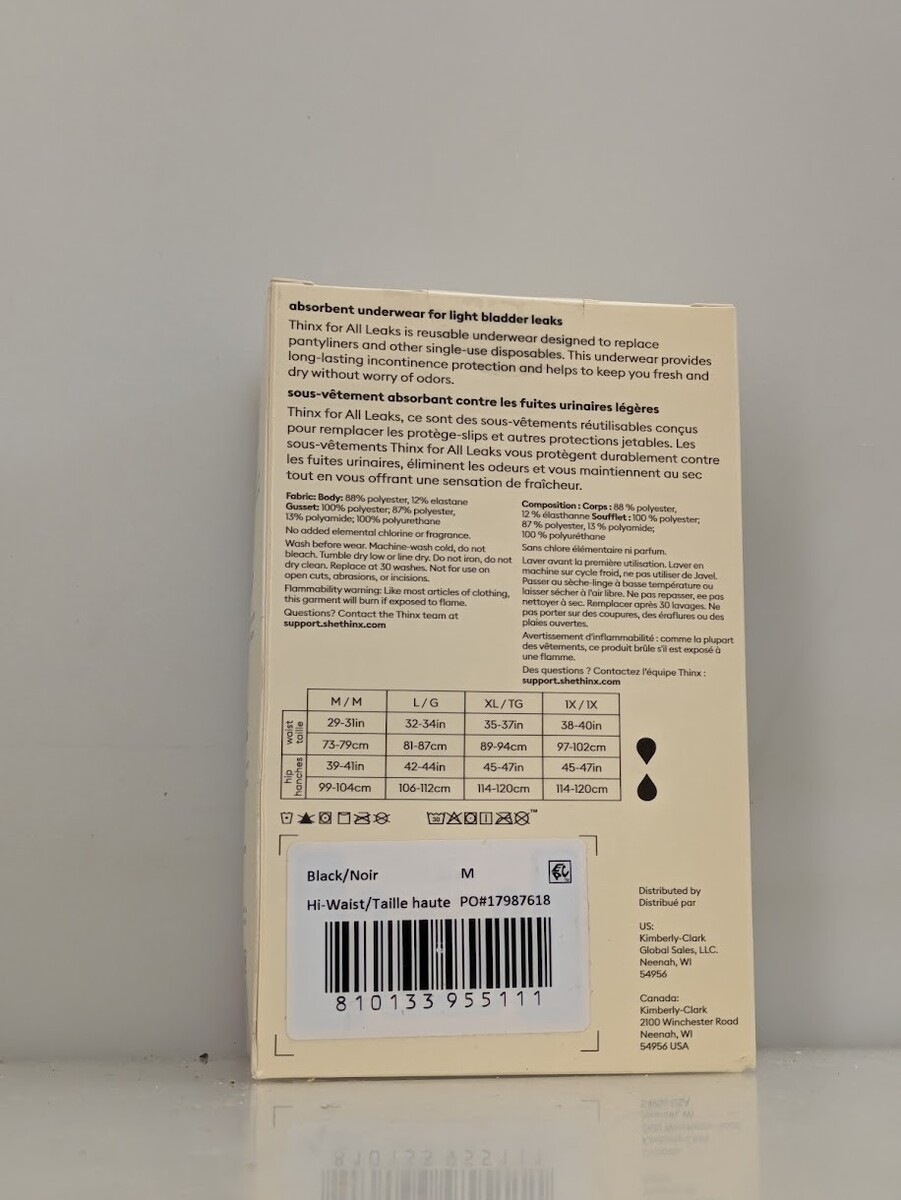 Thinx For All Leaks adult incontinence underwear, light absorbency, medium, black, 1 count, HSA/FSA-eligible, packaging may vary
