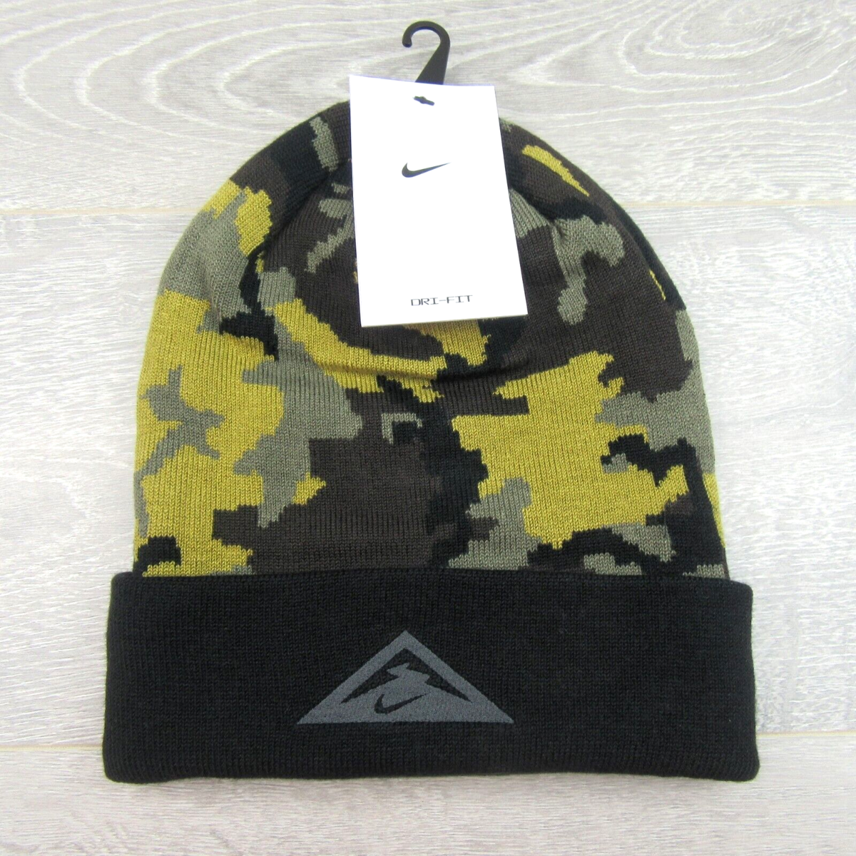 Nike Trail Running Beanie One Size Fit Olive Gold Black Anthracite Camo Dri-Fit