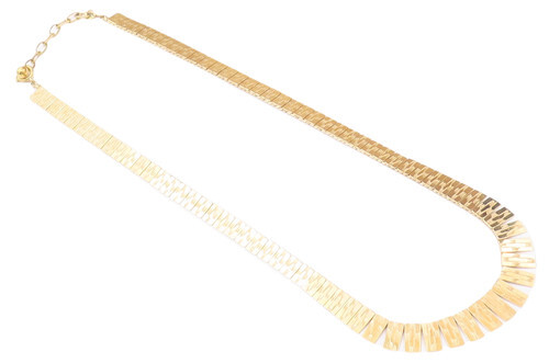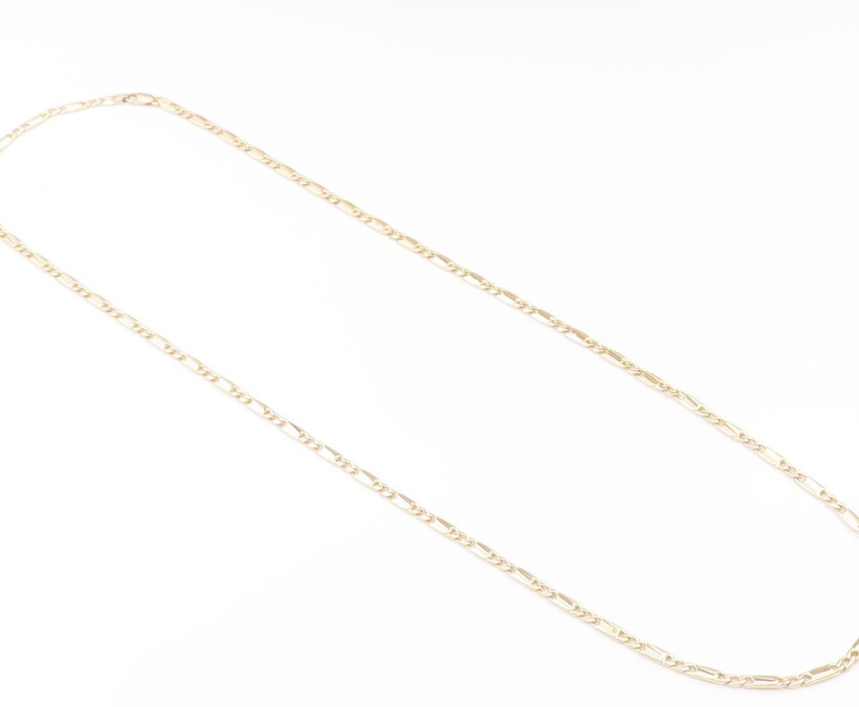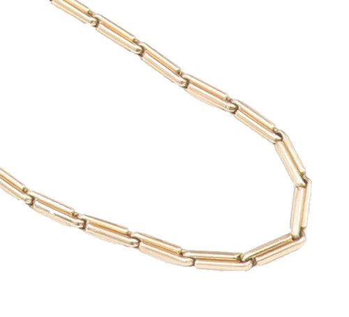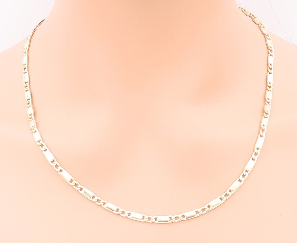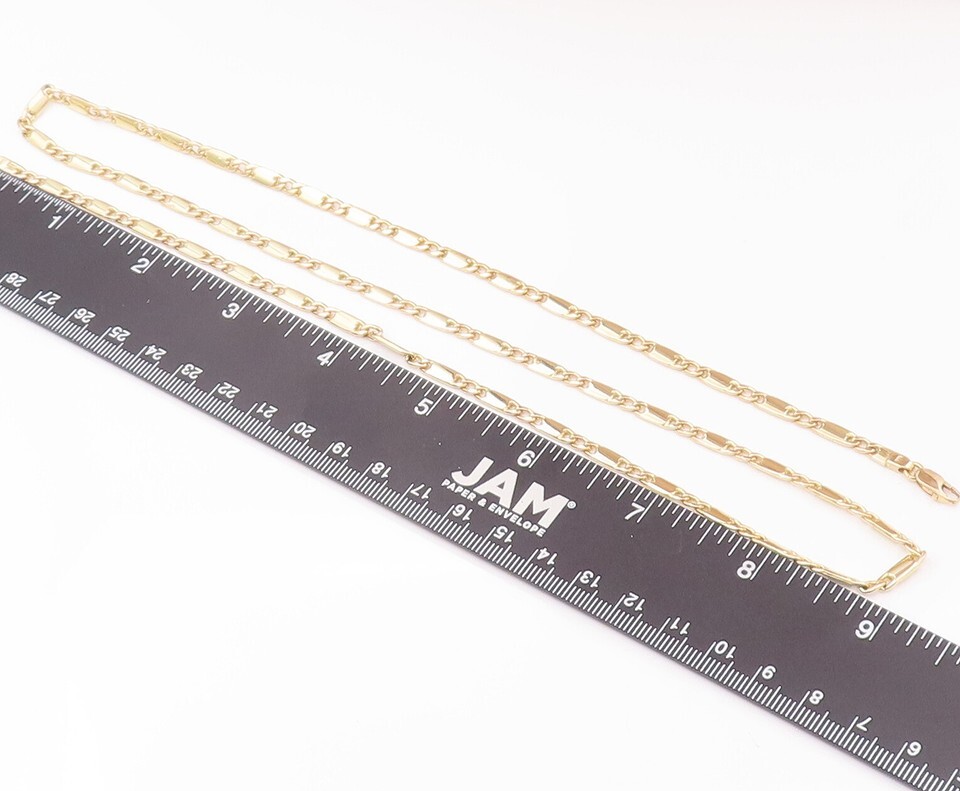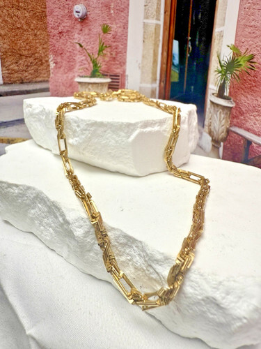 Authenticity Guarantee 14K GOLD Vintage Necklace Solid Carved Chained Interl...