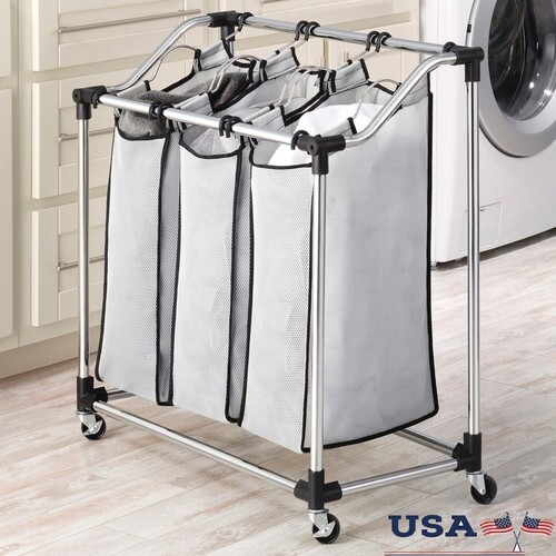 Whitmor's no tool, easy to assemble chrome laundry sorter features 3 washable foam and mesh sorter bags. Each bag lifts out of the frame for transportation to the laundry room with presorted clothes. Also the heavy duty chrome frame comes with heavy duty wheels.Product Measures: 16" wide by 31" long by 32.5" tall/deepFeatures: Laundry sorter No tool assembly chromed steel frame Features three foam and mesh sorter bags Breathable fabric Heavy duty wheels includedMaterial: Chromed Steel Fabric