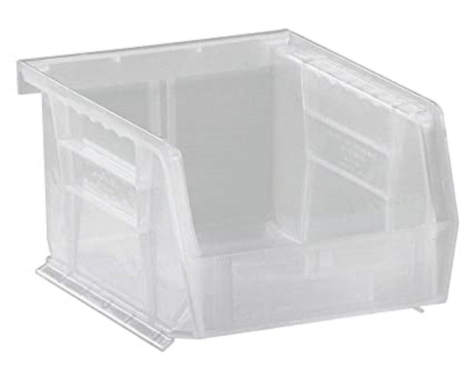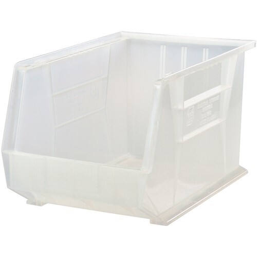 Clear plastic bins, manufactured of FDA approved materials, are the ultimate solution to organize and store your inventory. These strong bins offer front, back and side grips for easy handling. Built-in rear hanger allows bins to hang from louvered panels or rails. Optional clear injection molded crystal styrene window increases bin and provides quick view of bin contents. Dividers maximize flexibility and keep contents organized. Wide stacking ledge and anti-slide lock keep stacked bins steady and prevent forward shifting. Water, rust and corrosion proof. Easily cleaned with soap and water and impervious to most chemicals. Large molded front label slots for ID labels. Autoclavable up to 250 degree Fahrenheit and resistant to extreme cold. Guaranteed not to break or crack under normal load conditions. Available in Clear.